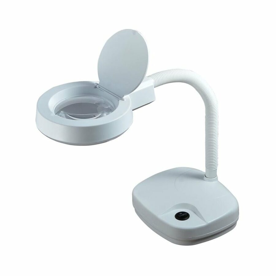 - Lupa má čočku s ohebným ramenem na široké pevné základně. Čočka je vyrobena z optického plastu a nabízí dvě zvětšení: 2x pro velkou čočku a 3x pro malou čočku. Vedle ní je jasné světlo, které rovnoměrně osvětluje pracovní prostor pod čočkou. Na základně je umístěn spínač osvětlení.