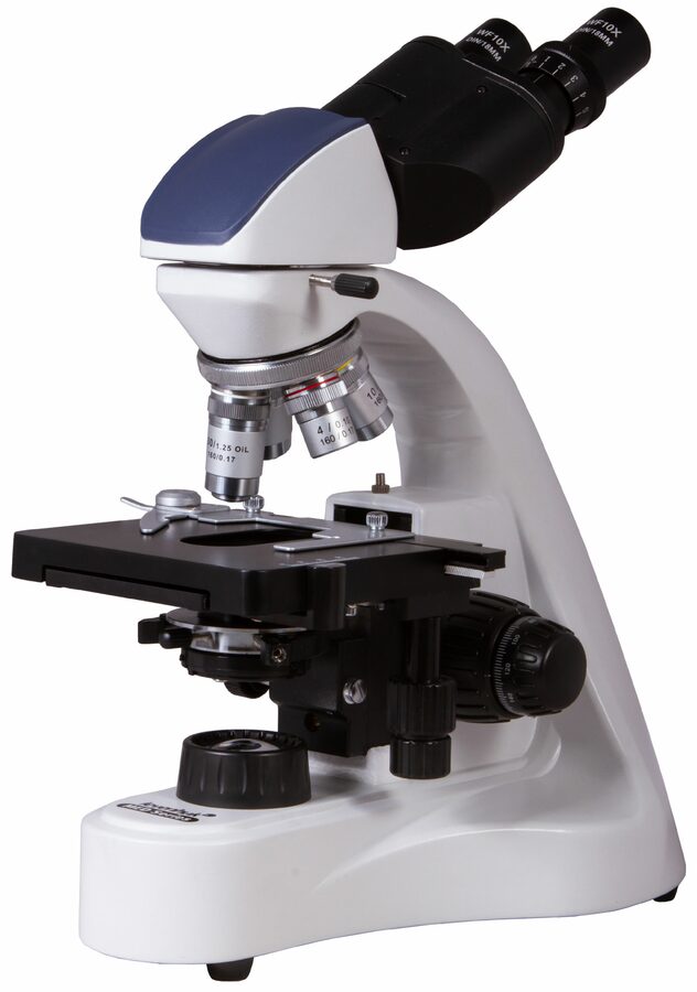 Levenhuk MED 10B je laboratorní mikroskop s binokulární hlavou. Je určen pro profesionální práci s mikroskopickými preparáty a lze jej použít k řešení různých úkolů na klinikách, ve vědeckých centrech, výzkumných či lékařských laboratořích a vzdělávacích institucích. Mikroskop obsahuje achromatickou optiku, která poskytuje vysoce detailní obraz bez aberací až při 1000x zvětšení.
