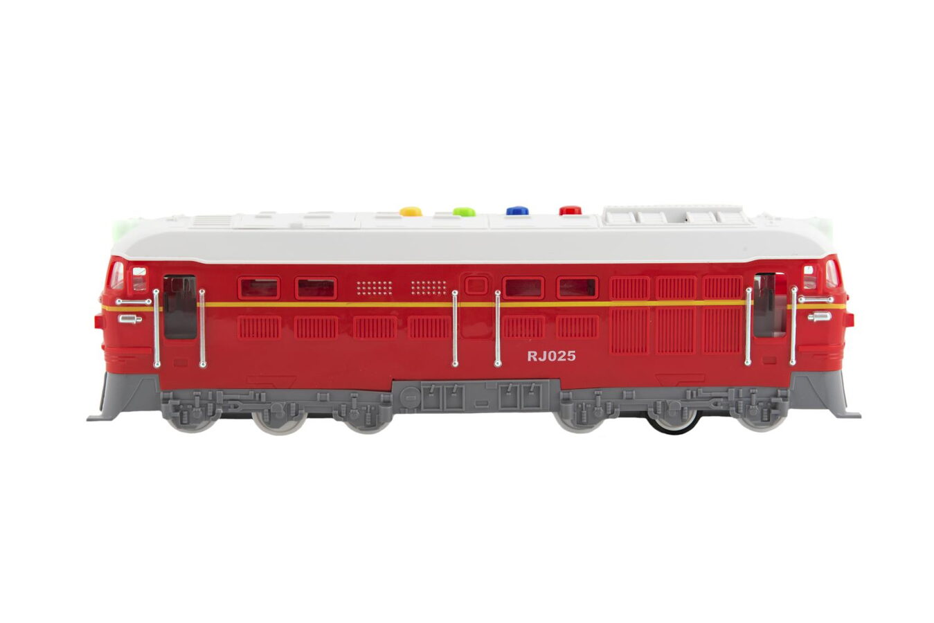 Krásná lokomotiva červené barvy vyrobená z plastu je velikosti 35 cm.