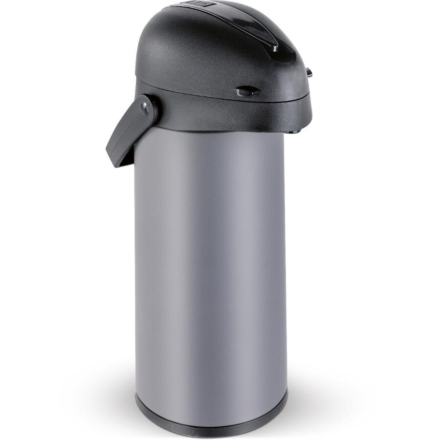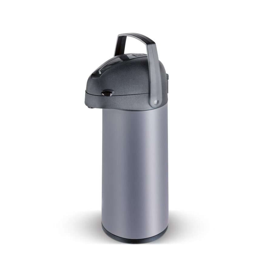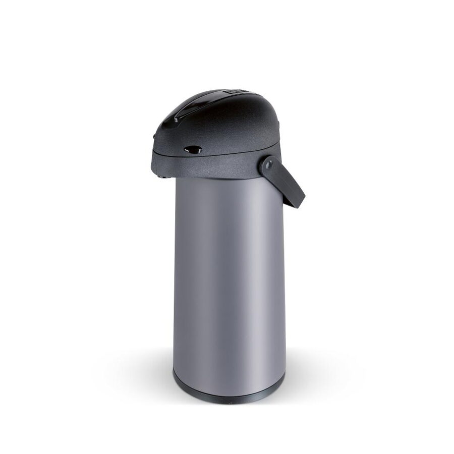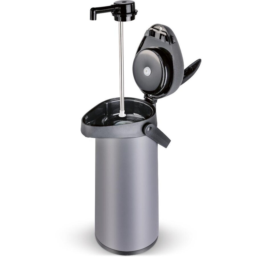 Termoska s dávkovací pumpičkou vyrobena z vysoce odolného plastu s vnitřní skleněnou vložkou.