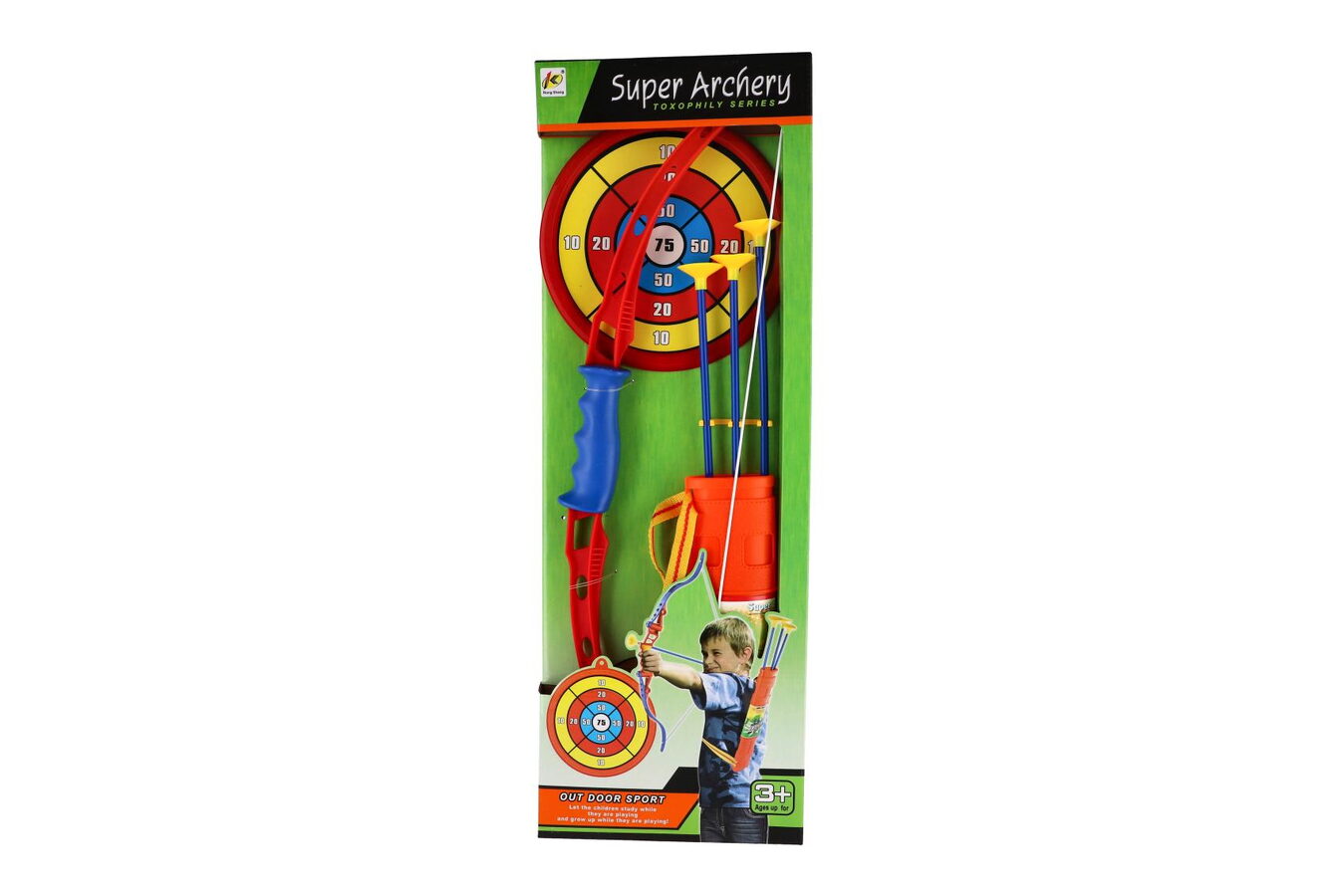 Plastový set s lukem, šípy a terčem určený pro malé střelce, kteří střílí se šípy zakončenými přísavkou na připravený terč. Střelba je tak pro děti bezpečná. Po ukončení střílení lze šípy složit do toulce, který má nastavitelný popruh pro snadné přenášení. Vhodné od 3 let.