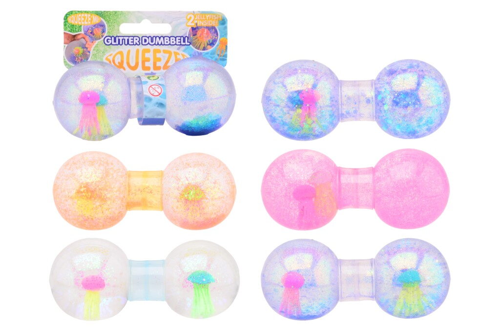 Mačkací činka se třpytkami – mačkej, natahuj – antistresová hračka. Různé barvy.