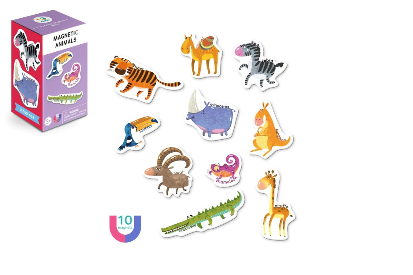Tato sada magnetů s motivem zvířátek obsahuje poutavé obrázky s anglickými názvy, které budou inspirací pro nekonečné hodiny kreativní hry, ale také dopomocí při učení angličtiny.