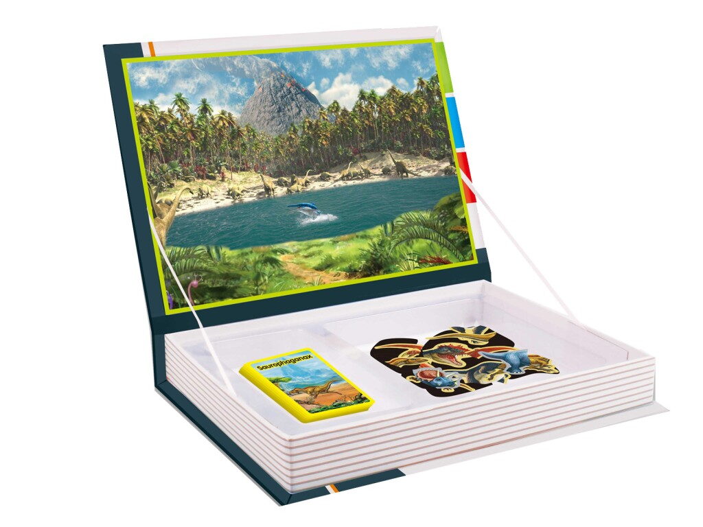 Otevřete knihu, vyberte si jednu kartičku a vytvořte scénu jako je na obrázku nebo si vytvořte vlastní, podle své představivosti. Praktické balení zajistí, že se hračka dá pohodlně přenášet. Děti se s ní zabaví nejen doma, ale i na dlouhých cestách. Balení obsahuje 18 karet a 57 doplňků v oblíbeném designu dinosaurů.