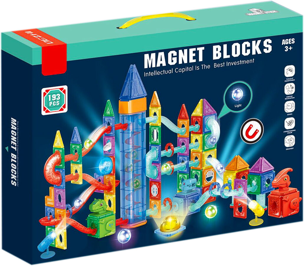 Magnetická stavebnice Dinosauří park s LED světly a kuličkou - 193 ks