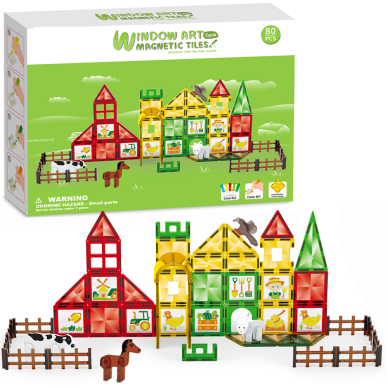 Magnetická stavebnice - Velká farma s malováním 80 ks