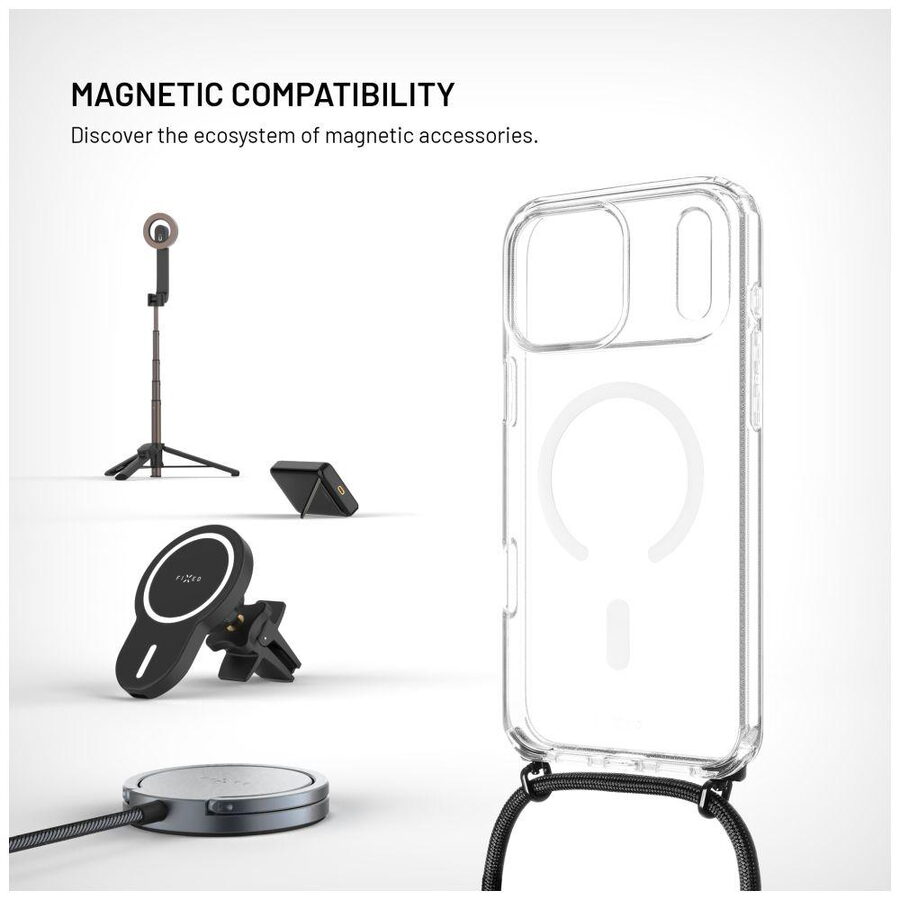Kryt FIXED MagPure Neck s černou šňůrkou na krk pro Apple iPhone 17 Pro Max