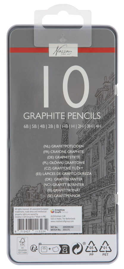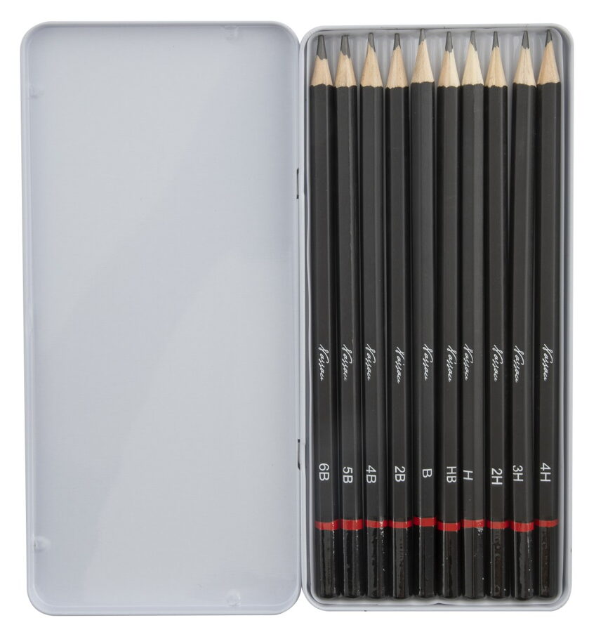 Malířské tužky 10 ks – sada obsahuje 10 ks malířských tužek různých tuhostí 6B,5B,4B,2B,B,HB,H,2H,3h a 4H.