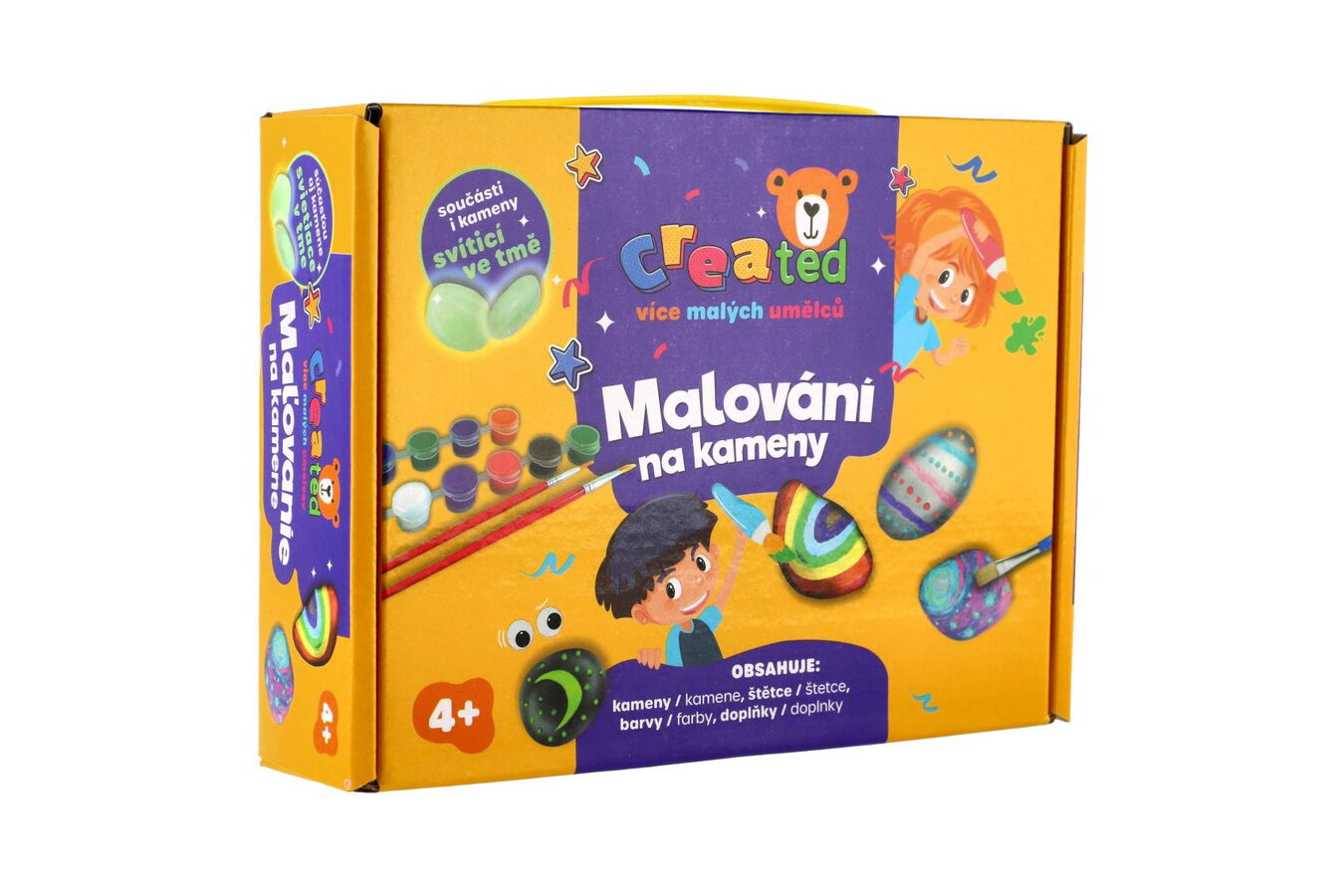 Malování na kameny/oblázky svítící ve tmě s barvami se štětci CREATED s doplňky v krabičce 19x14x5cm