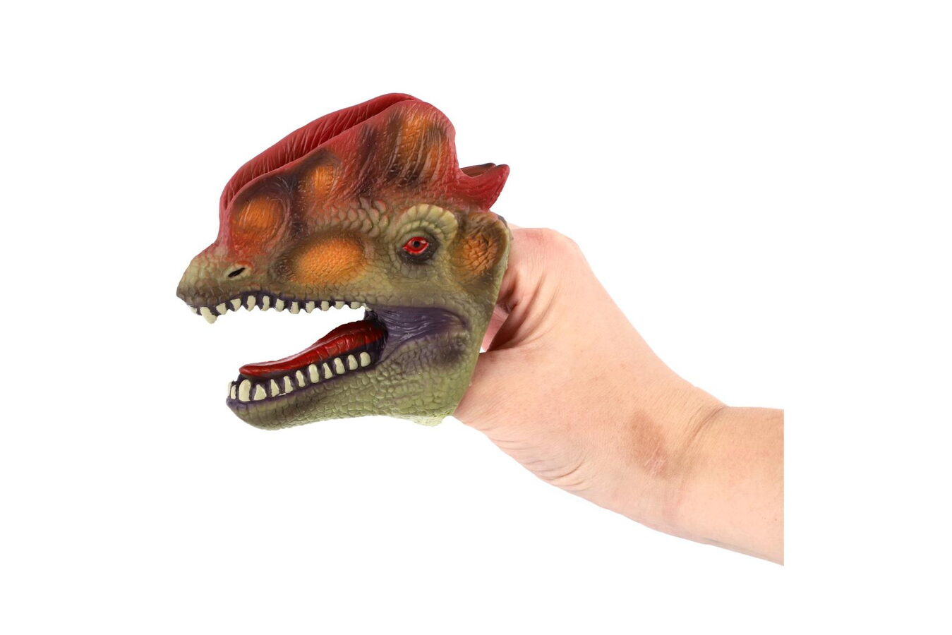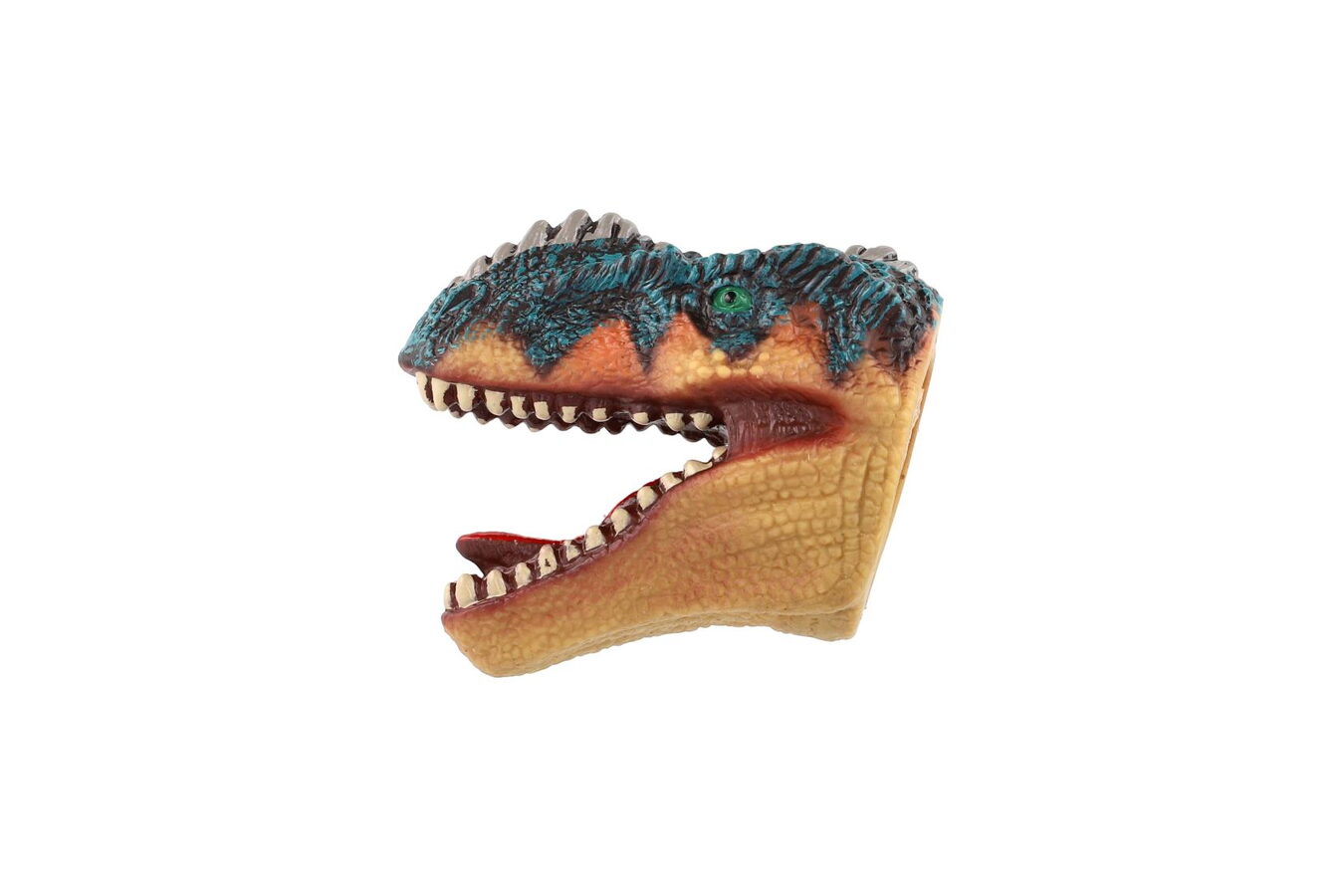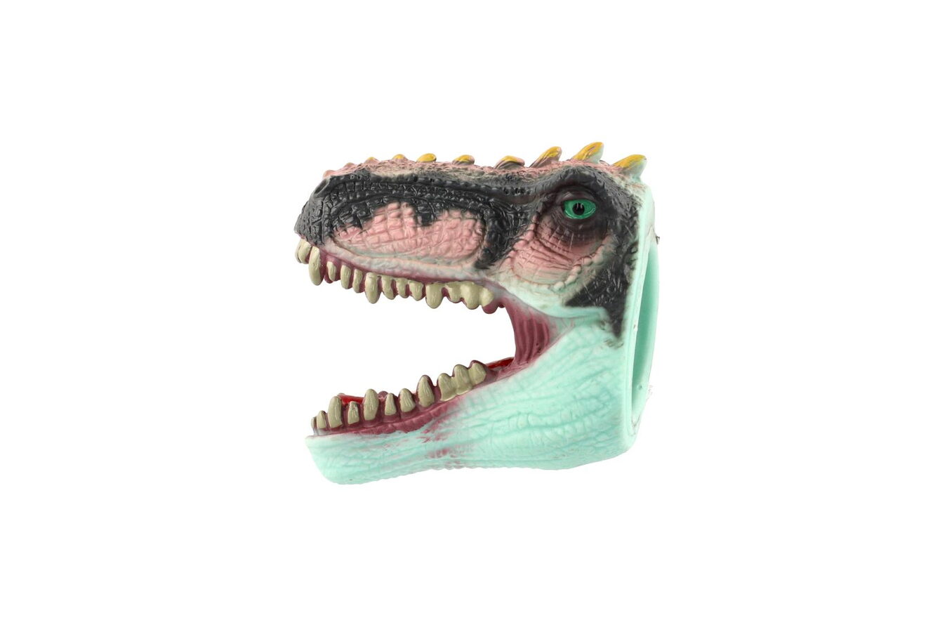 Ovládni vlastního dinosaura! Tento gumový maňásek v podobě dinosauří hlavy se nasazuje na prst a je ideální pro zábavné divadélko, strašení i kreativní hru. Díky měkkému materiálu je příjemný na používání a hodí se i pro menší děti.