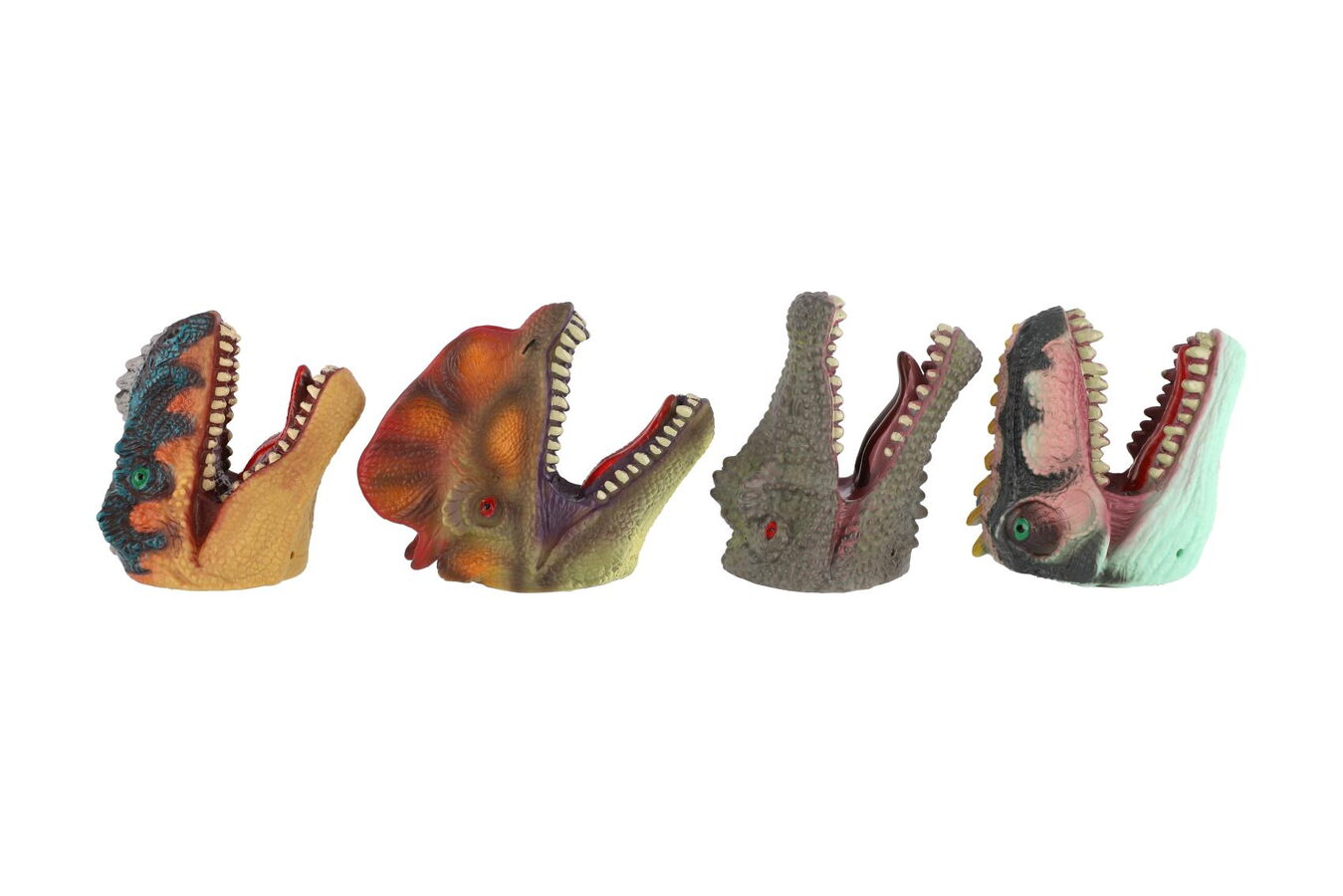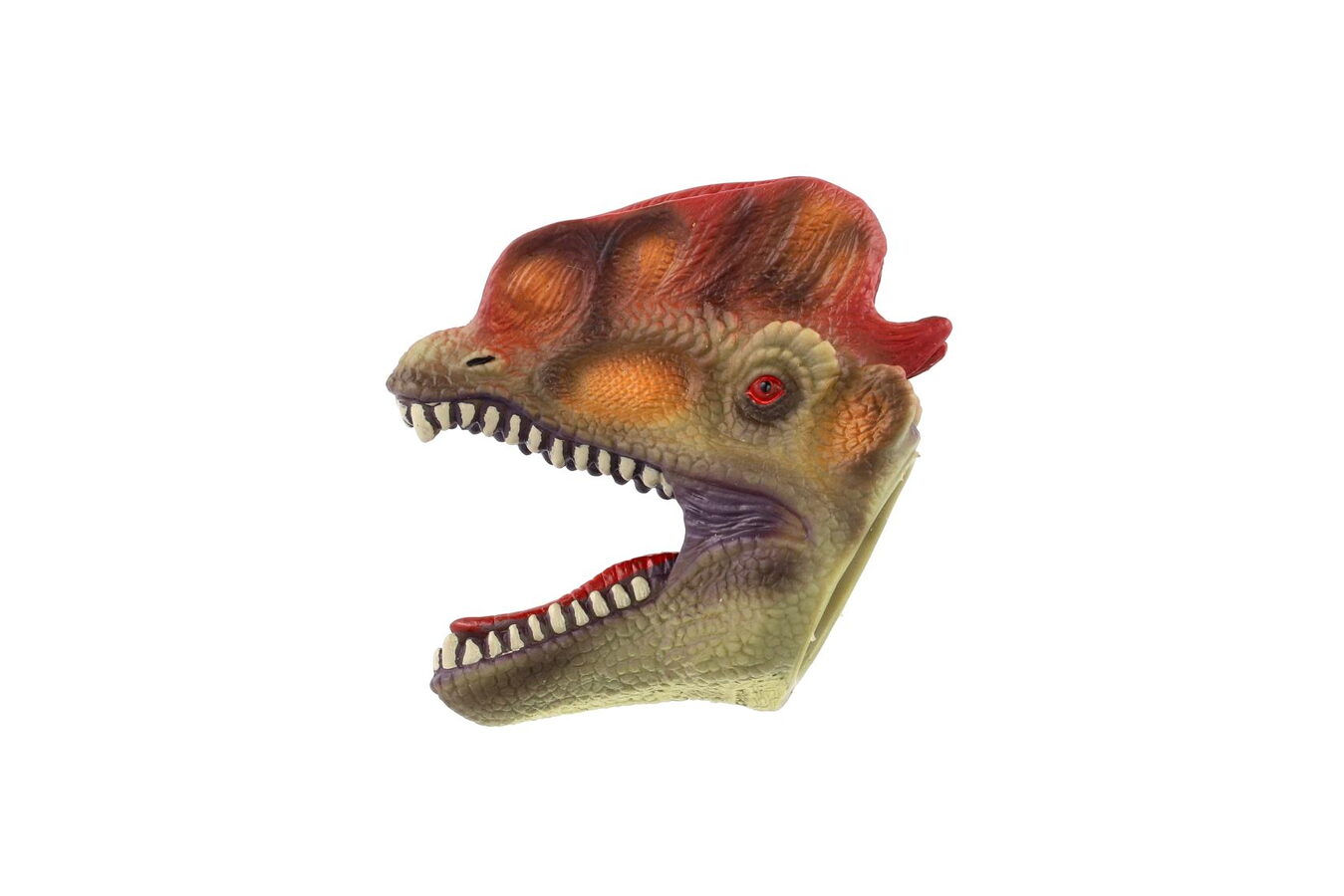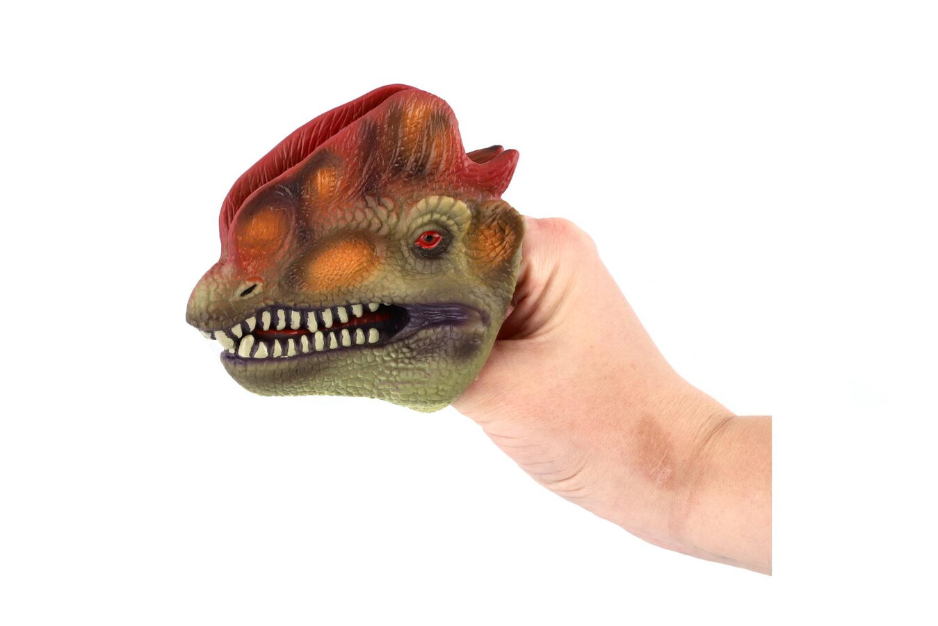 Ovládni vlastního dinosaura! Tento gumový maňásek v podobě dinosauří hlavy se nasazuje na prst a je ideální pro zábavné divadélko, strašení i kreativní hru. Díky měkkému materiálu je příjemný na používání a hodí se i pro menší děti.