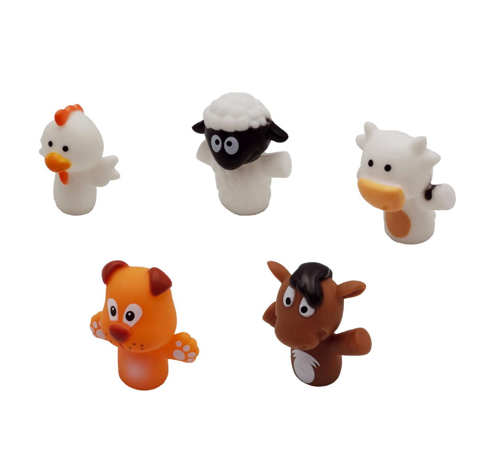 Maňásci v podobě gumových zvířátek jistě potěší a vykouzlí úsměv na tváři každému dítěti. S prstovými zvířátky si užijete spoustu legrace. Můžete si hrát na farmu s domácími zvířátky. Sada obsahuje 5 ks zvířátek.