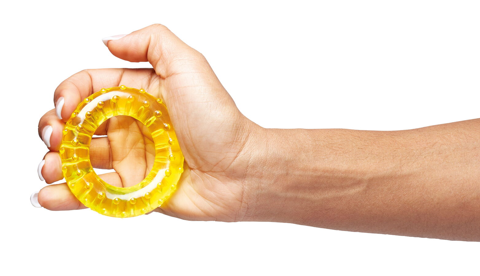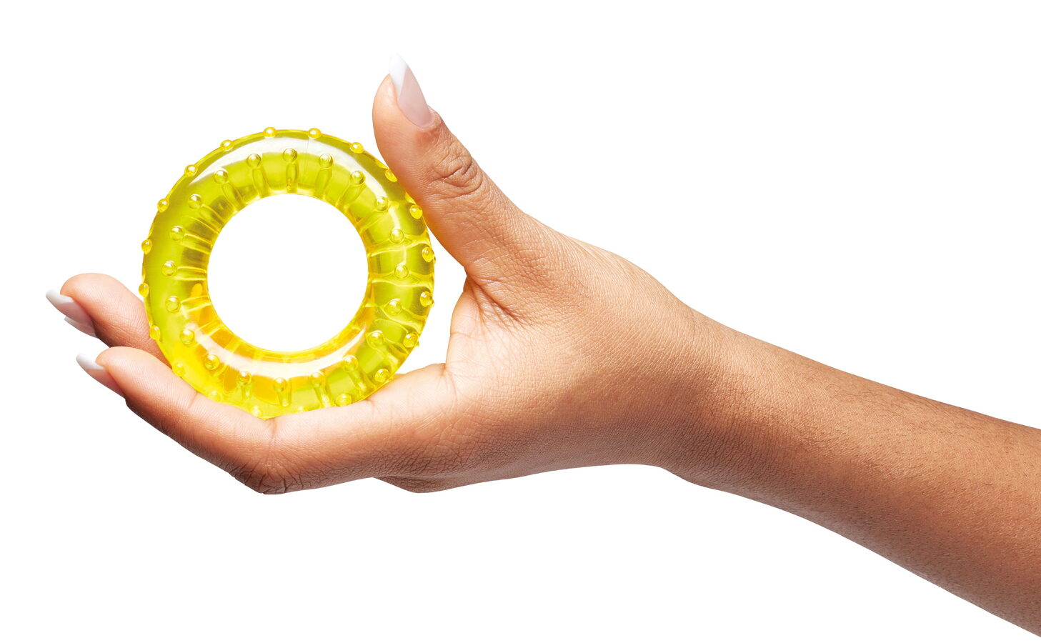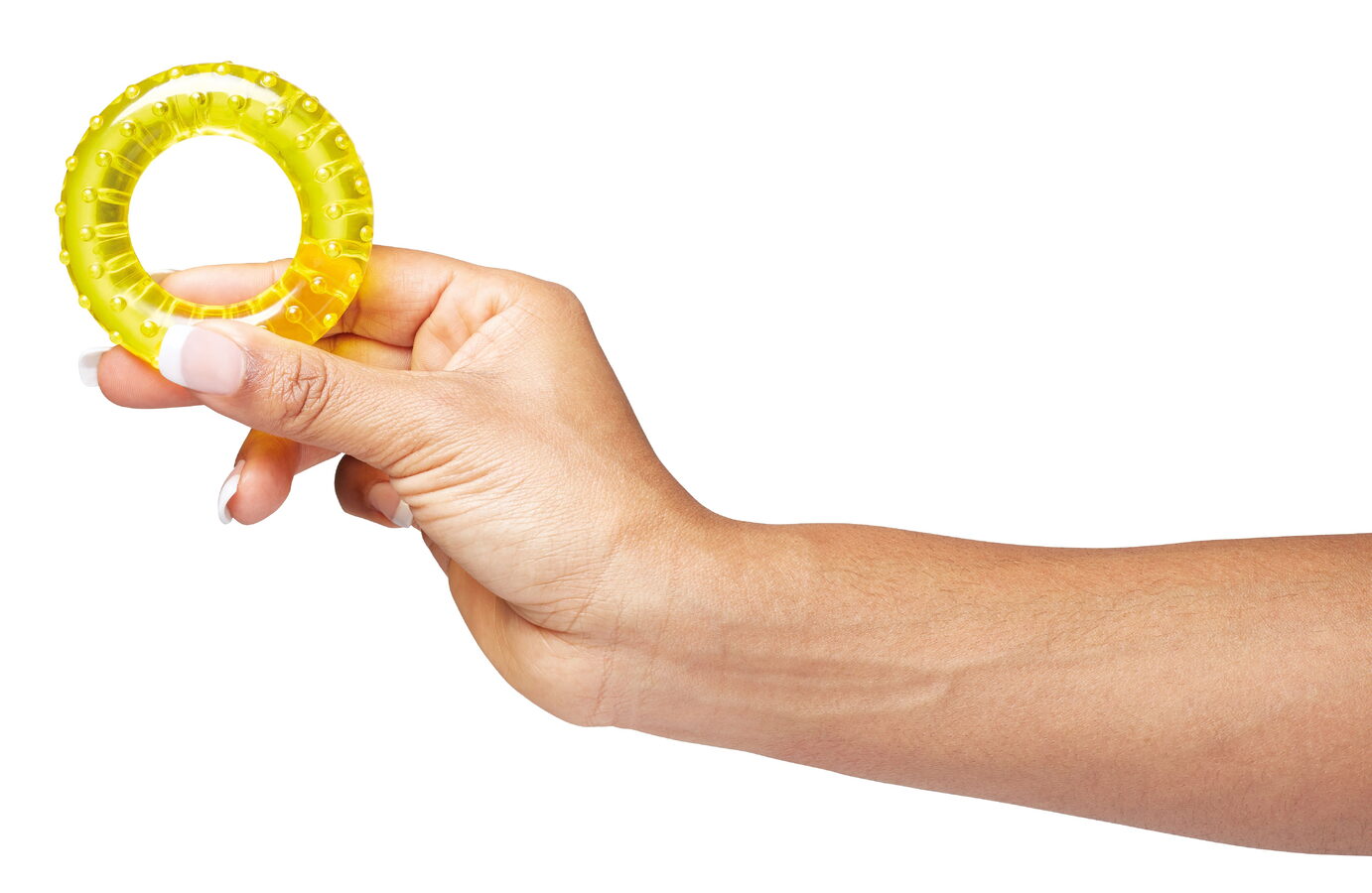 Flexibilní posilovací kroužek průměru 70 mm, vhodný k procvičování, masáži a posilování prstů a dlaní.