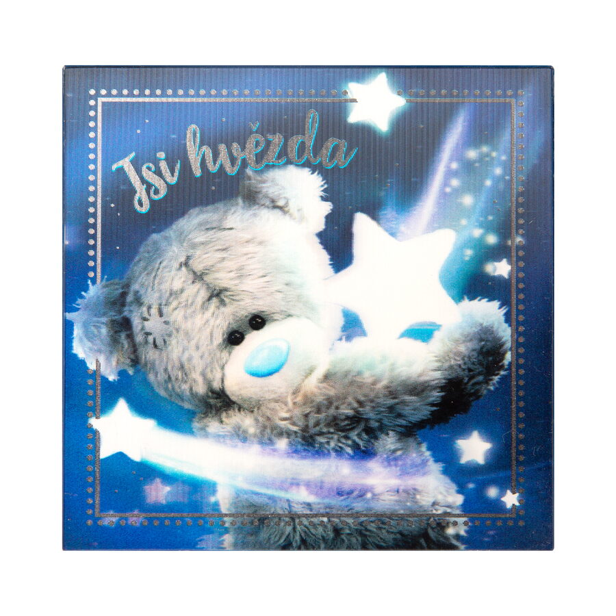 Mléčná čokoláda v dárkovém balení s 3D medvídky Me to You potěší milým vzkazem. Hmotnost: 90 g Rozměry: 10,2 cm × 10,2 cm × 1,5 cm.