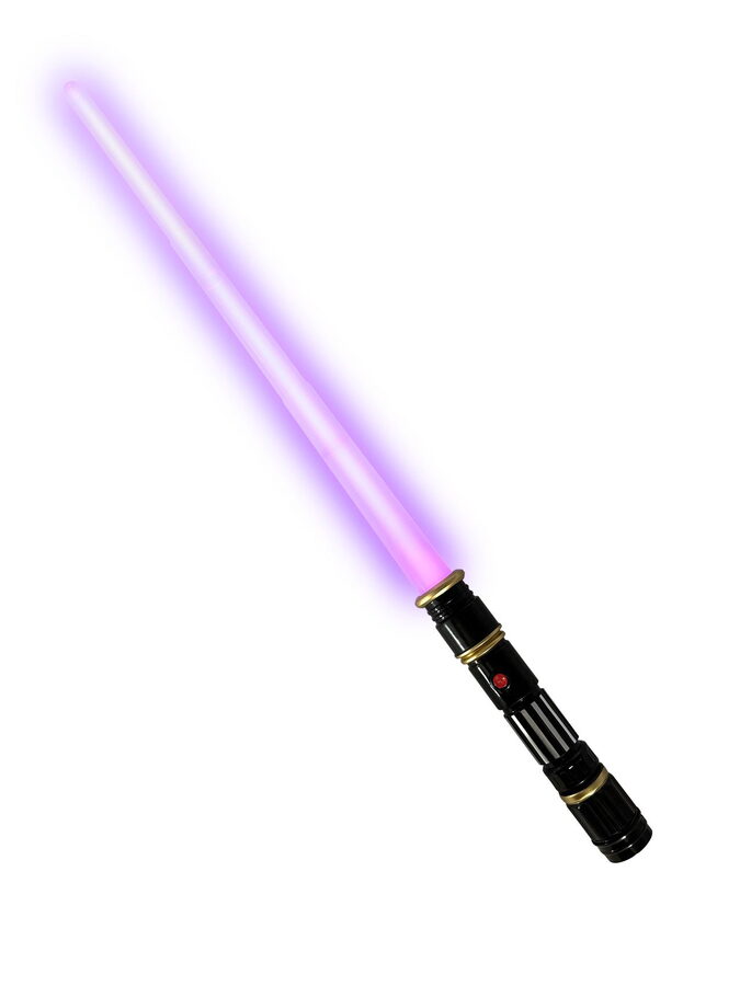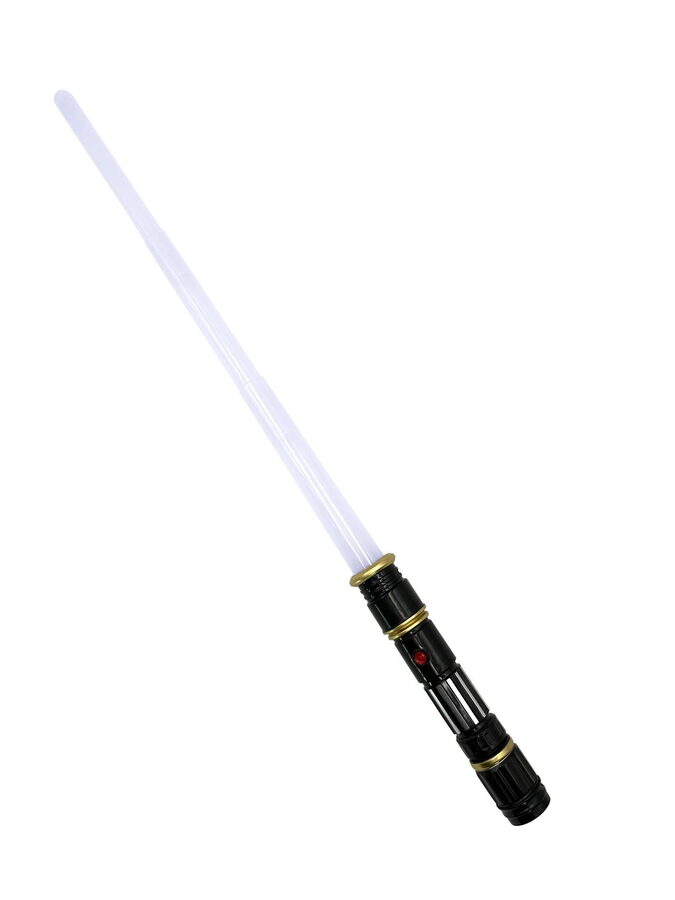 Skládací meč při pohybu mění zvuk, při zasažení cíle vydává zvuk. Svítí a mění barvy. Na baterie 3x AAA, které jsou součástí hračky.