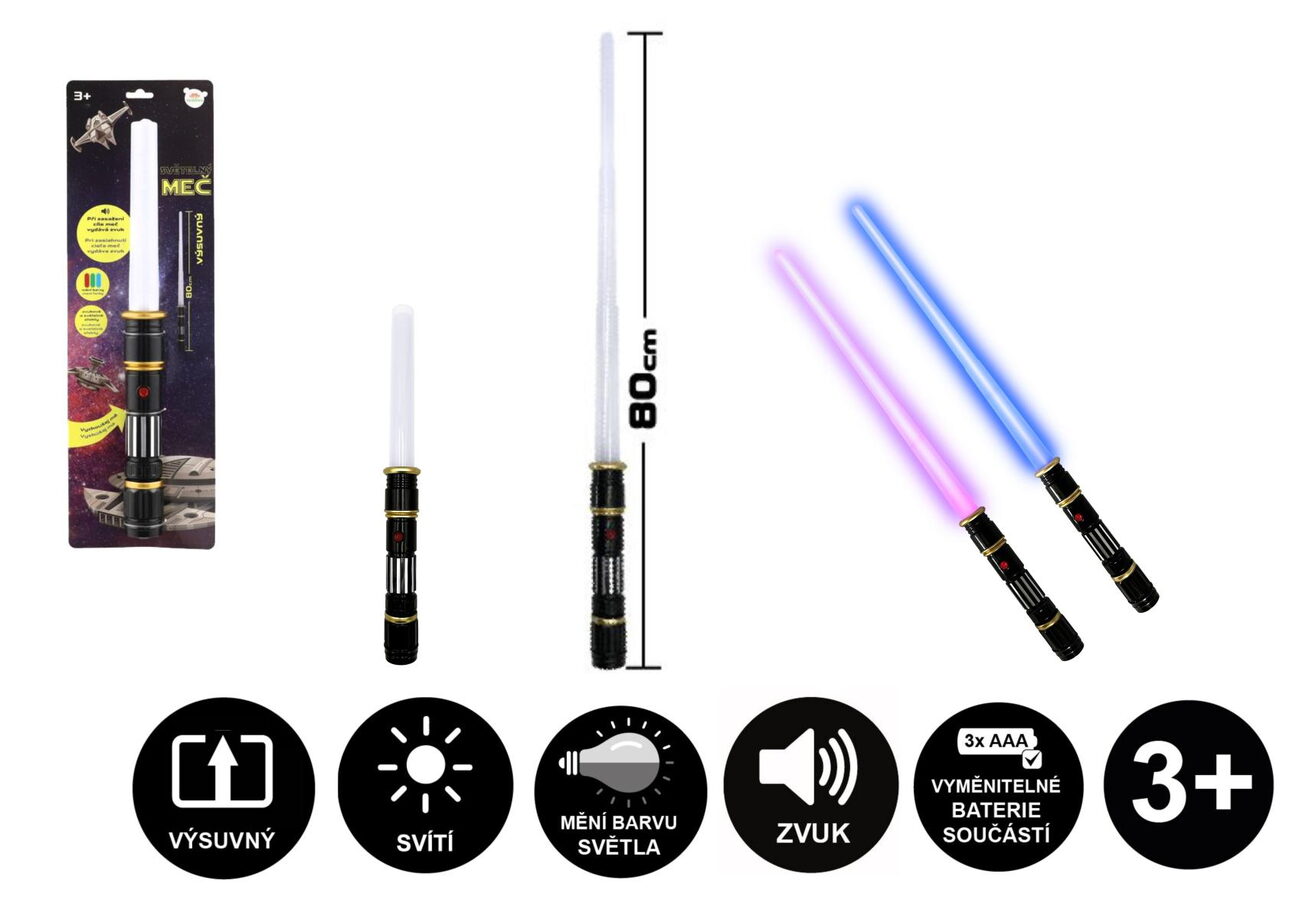 Meč světelný vesmírný skládací plast 80cm na baterie se světlem se zvukem na kartě 16x51x5cm