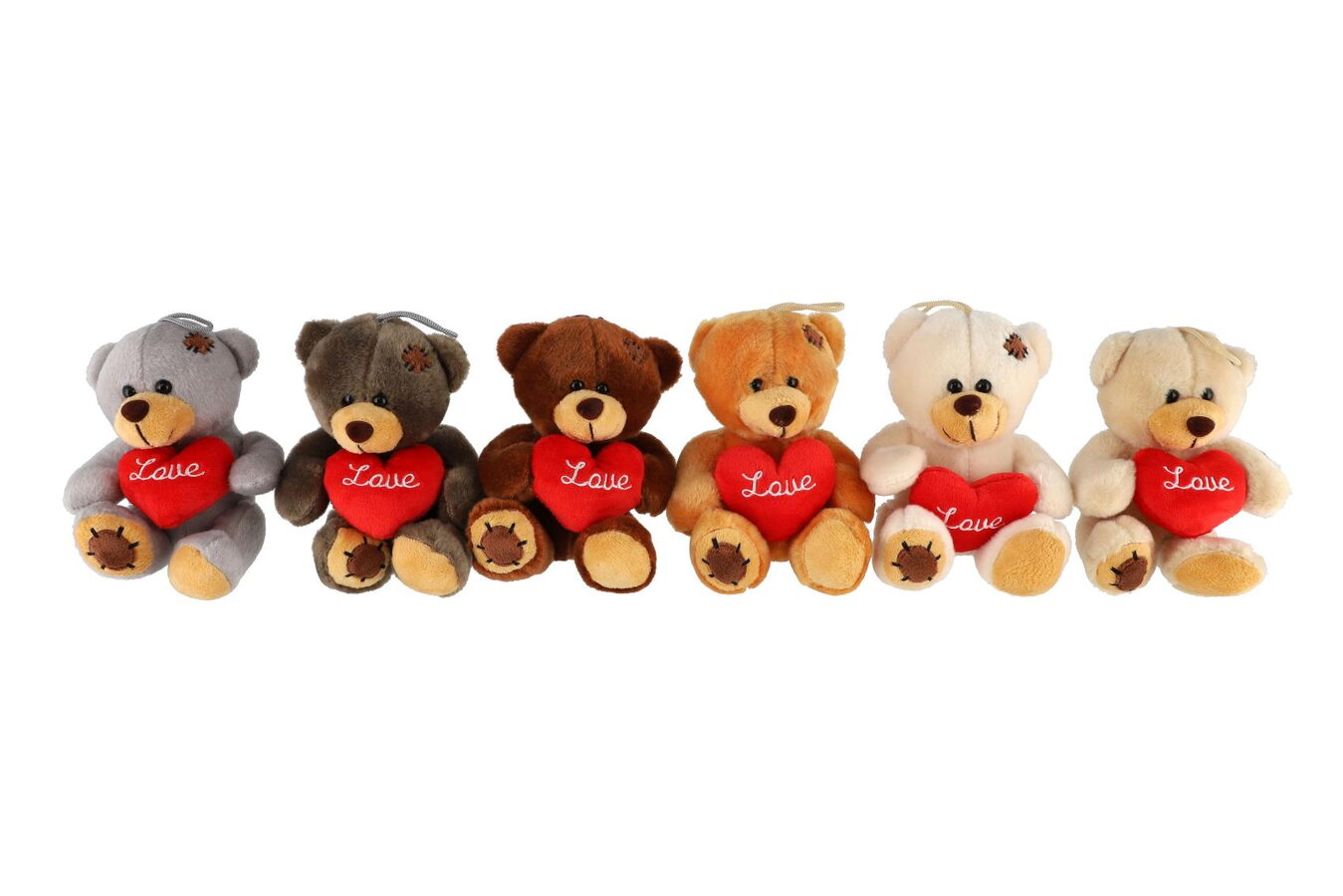 Medvěd/Medvídek sedící se srdcem plyšové 10x14cm 6 barev