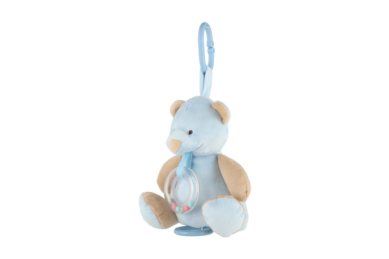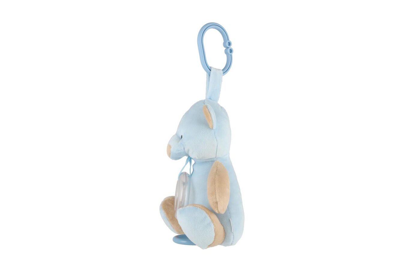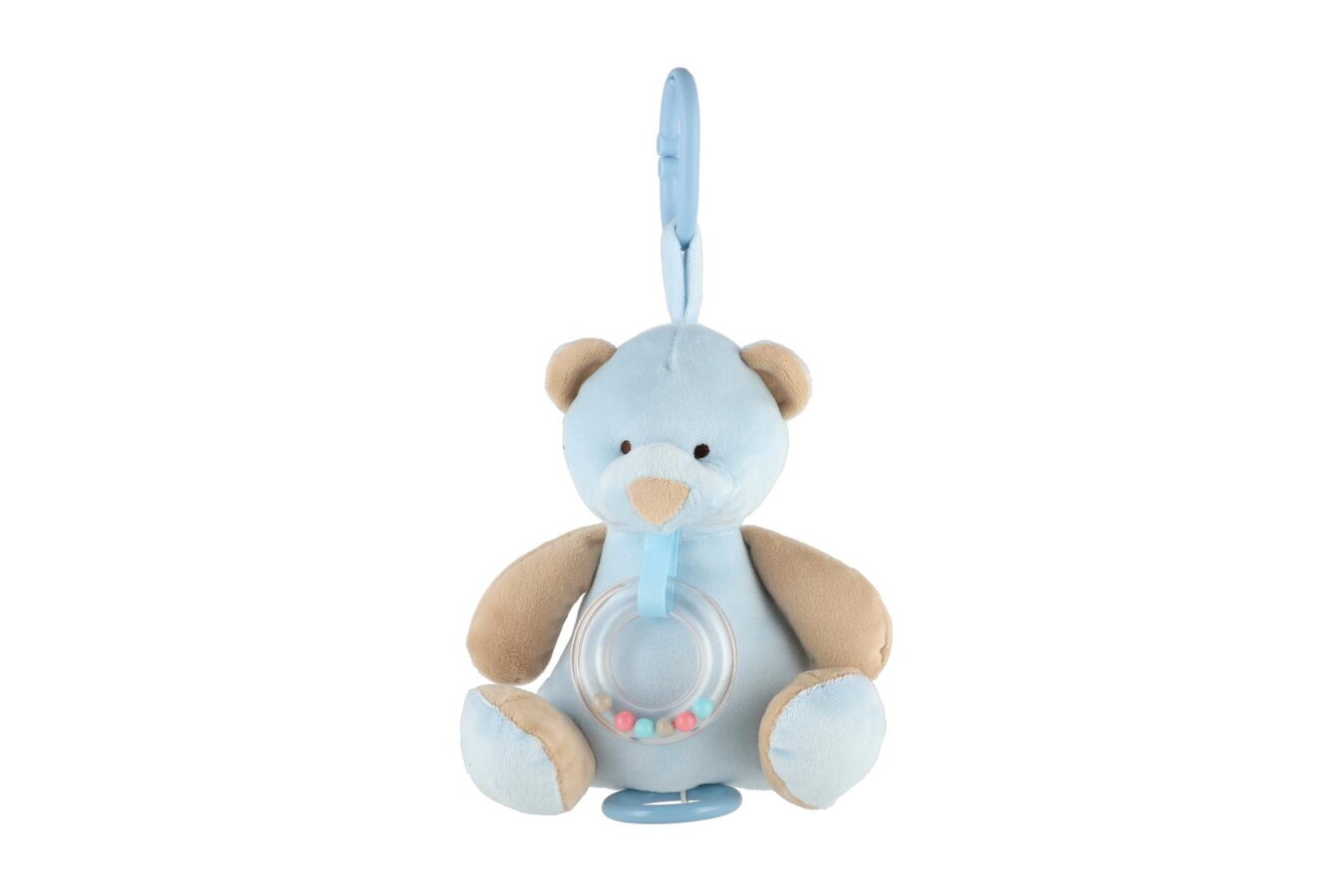 Roztomilý modrý natahovací medvídek hraje příjemnou melodii, která miminko uklidní a pomáhá mu při usínání. Hračku lze zavěsit za pomocí klipu na postýlku nebo kočárek. Hrací strojek je zabudovaný uvnitř medvídka.