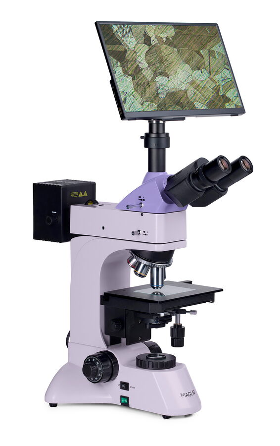 Metalurgický mikroskop MAGUS Metal D600 LCD je určen ke studiu neprůhledných vzorků (kovů, slitin, nátěrů, polovodičových a dalších materiálů) v odraženém světle pomocí technik mikroskopie ve světlém poli a polarizační mikroskopie. Můžete studovat mikrostruktury na plochých a leštěných vzorcích. Osvětlení procházejícím světlem umožňuje pod mikroskopem zkoumat také částice zachycené na filtrech a průsvitné materiály (např. tenké vrstvy). Mikroskop je vhodný pro výzkum a analýzy prováděné geology, metalurgy, inženýry, archeology a odborníky v dalších vědních oborech.