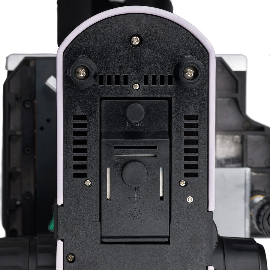 V základní konfiguraci se zvětšení mikroskopu pohybuje od 50x do 600x. Pokud chcete zvýšit horní hranici zvětšení, můžete namontovat další okuláry. Revolverový nosič s objektivy je orientován směrem dovnitř. Současně lze namontovat pět objektivů – čtyři z nich jsou součástí sady a jeden slot je volný pro instalaci dalšího. Mikroskop používá rovinné achromatické objektivy s dlouhou pracovní vzdáleností vhodné pro mikroskopování ve světlém poli.