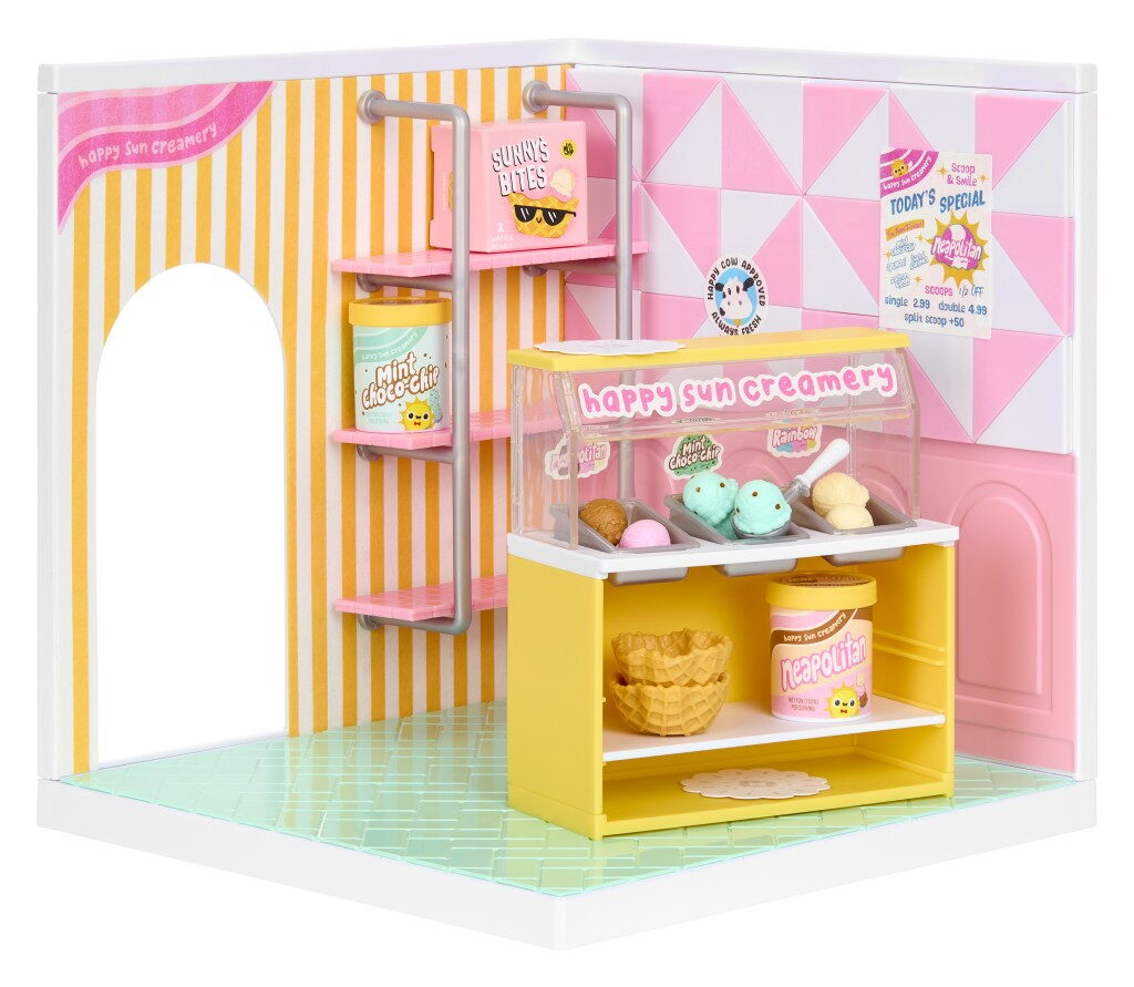 S Mini Místnostmi můžeš vytvořit vlastní svět pro Miniverse miniatury! Tento set ti umožní nejen vystavit své sběratelské kousky, ale i postavit si tematickou místnost podle vlastní fantazie. Balení obsahuje podlahu, stěny, obklady i tapety. Stačí položit dlaždice, připevnit stěny a panely a rozmístit police podle svých představ. Pizza shop obsahuje materiál a komponenty pro pizzerii. Zmrzlinový stánek zase pro zmrzlinárnu.
