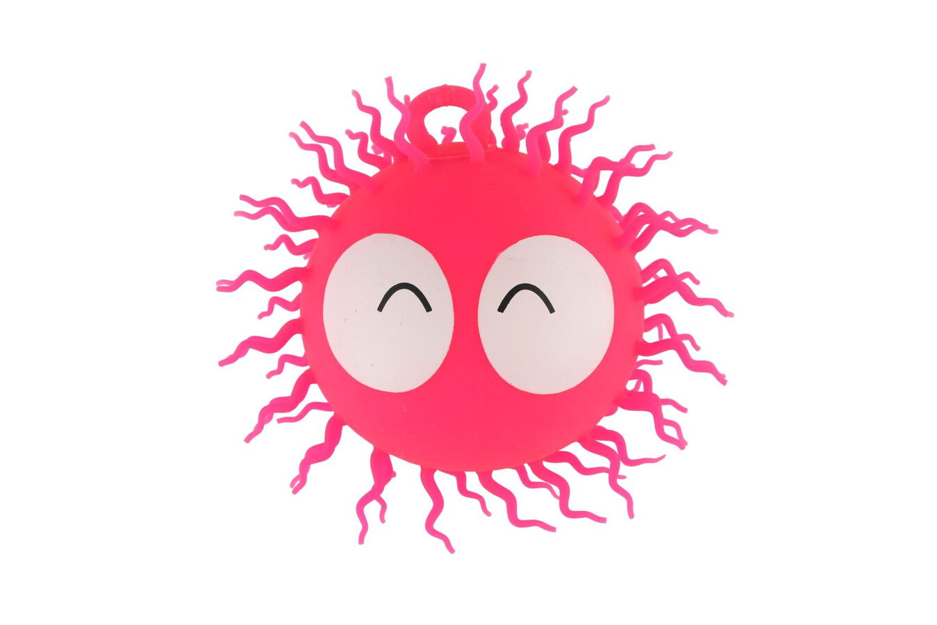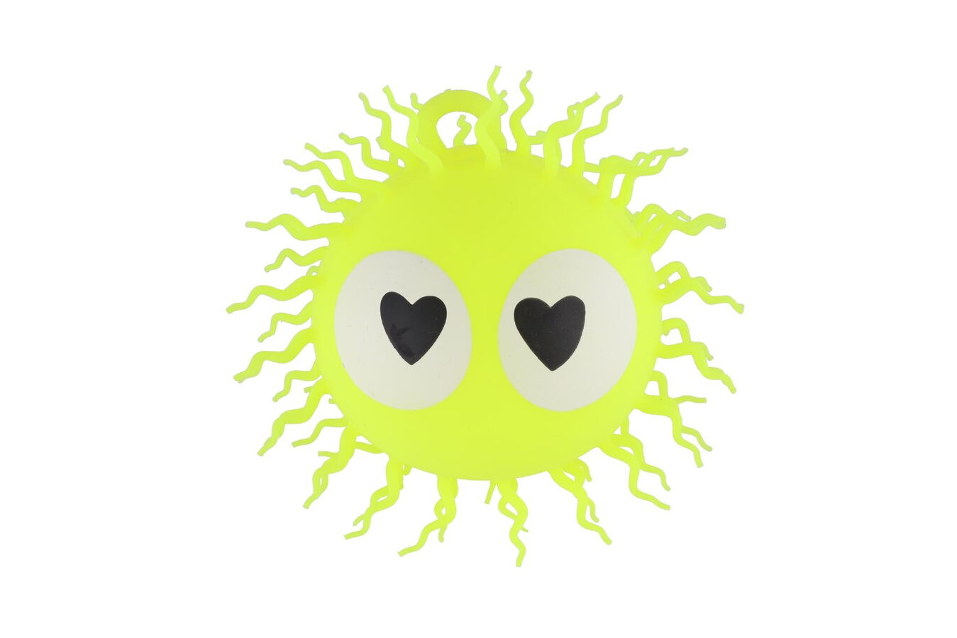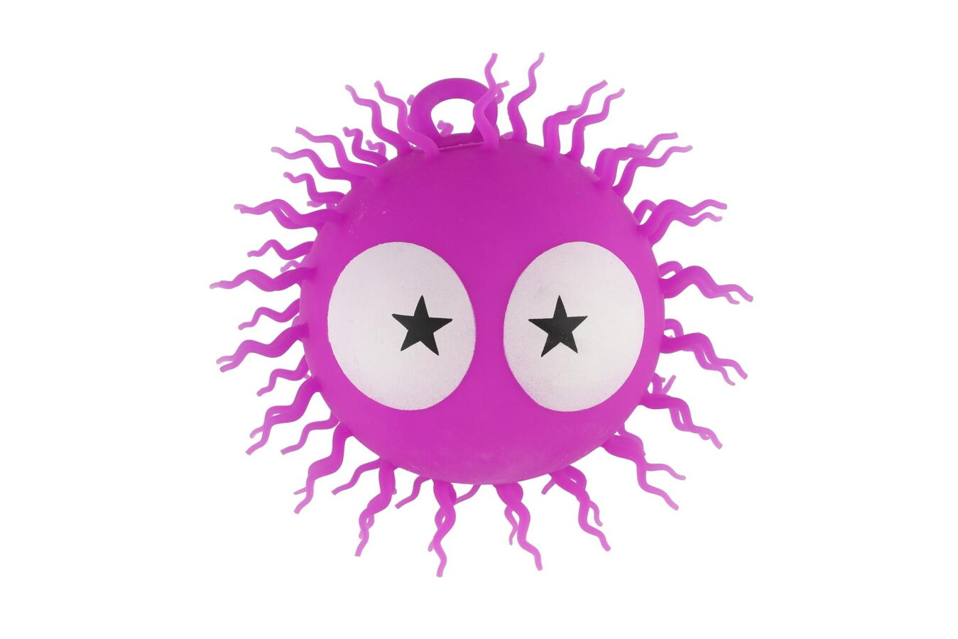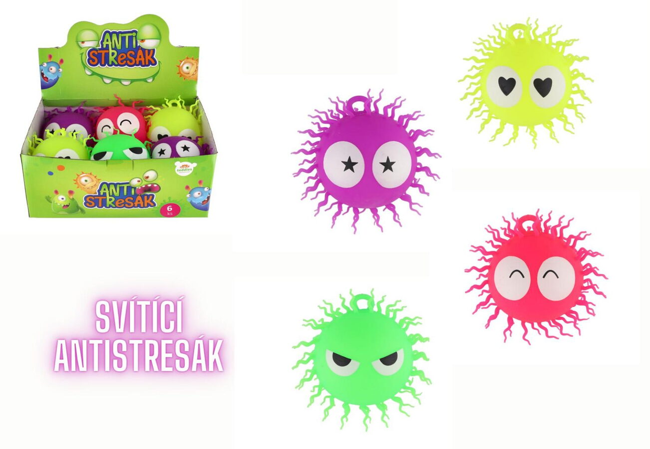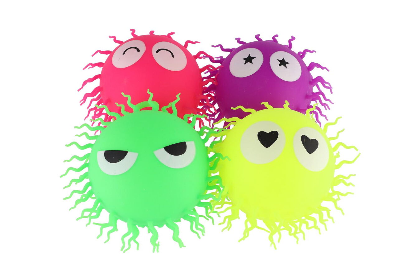 Míč chlupatý antistresový mačkací silikon 14cm na baterie se světlem 4 barvy v sáčku 6ks v boxu