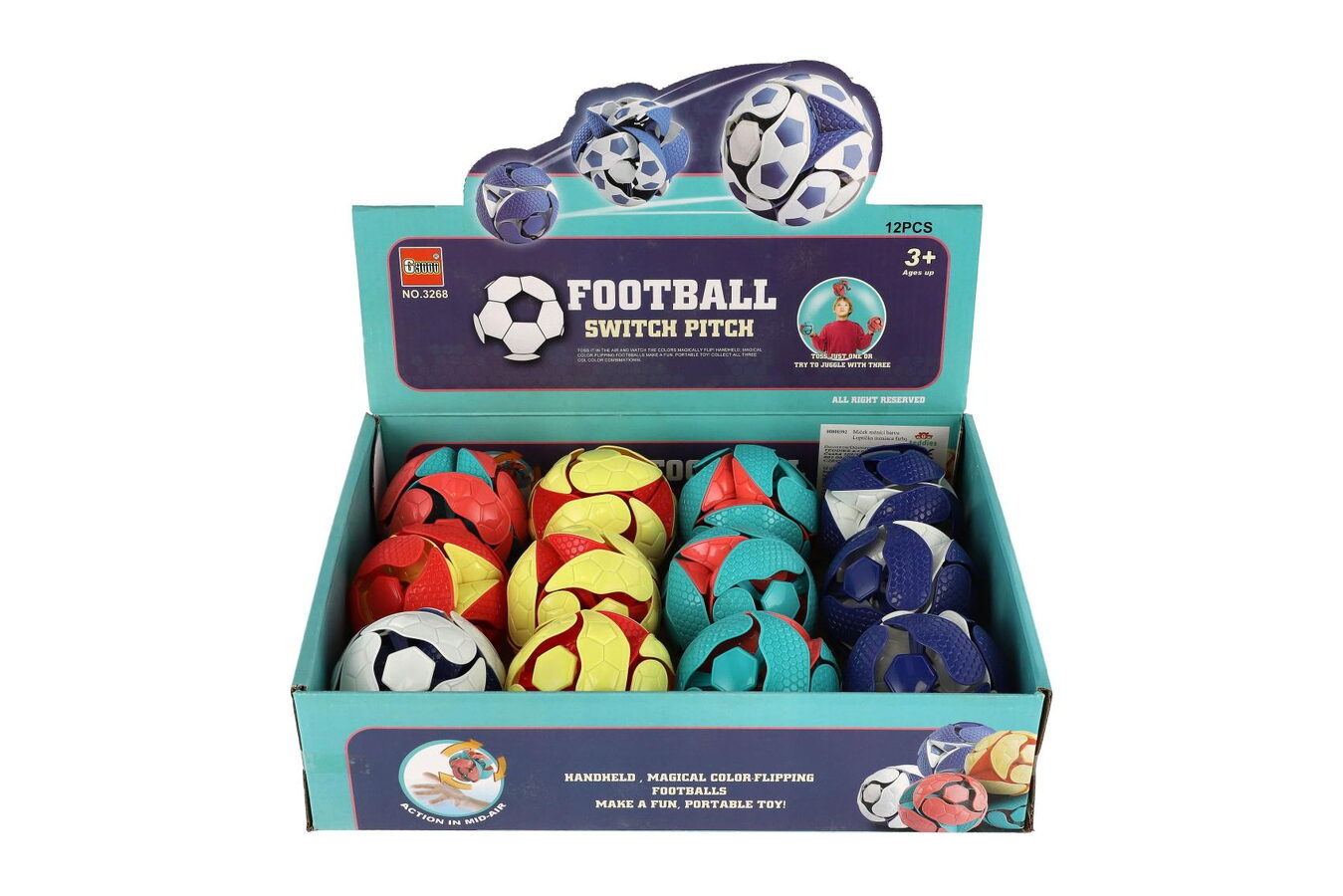 Míček měnící barvu po vyhození vzhůru plast 8cm 3 barvy 12ks v boxu
