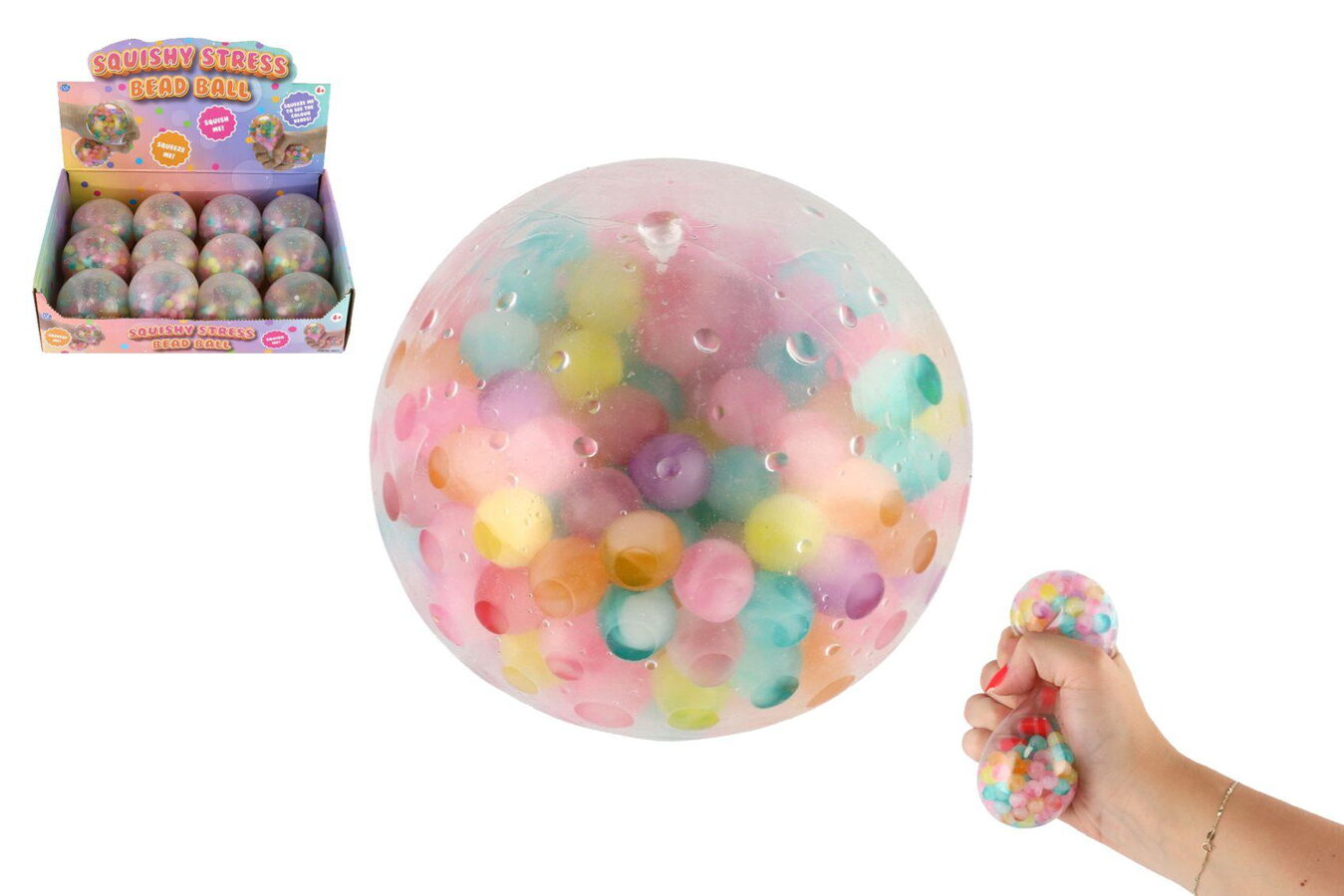 Míček s kuličkami antistresový mačkací silikon 7cm 12ks v boxu