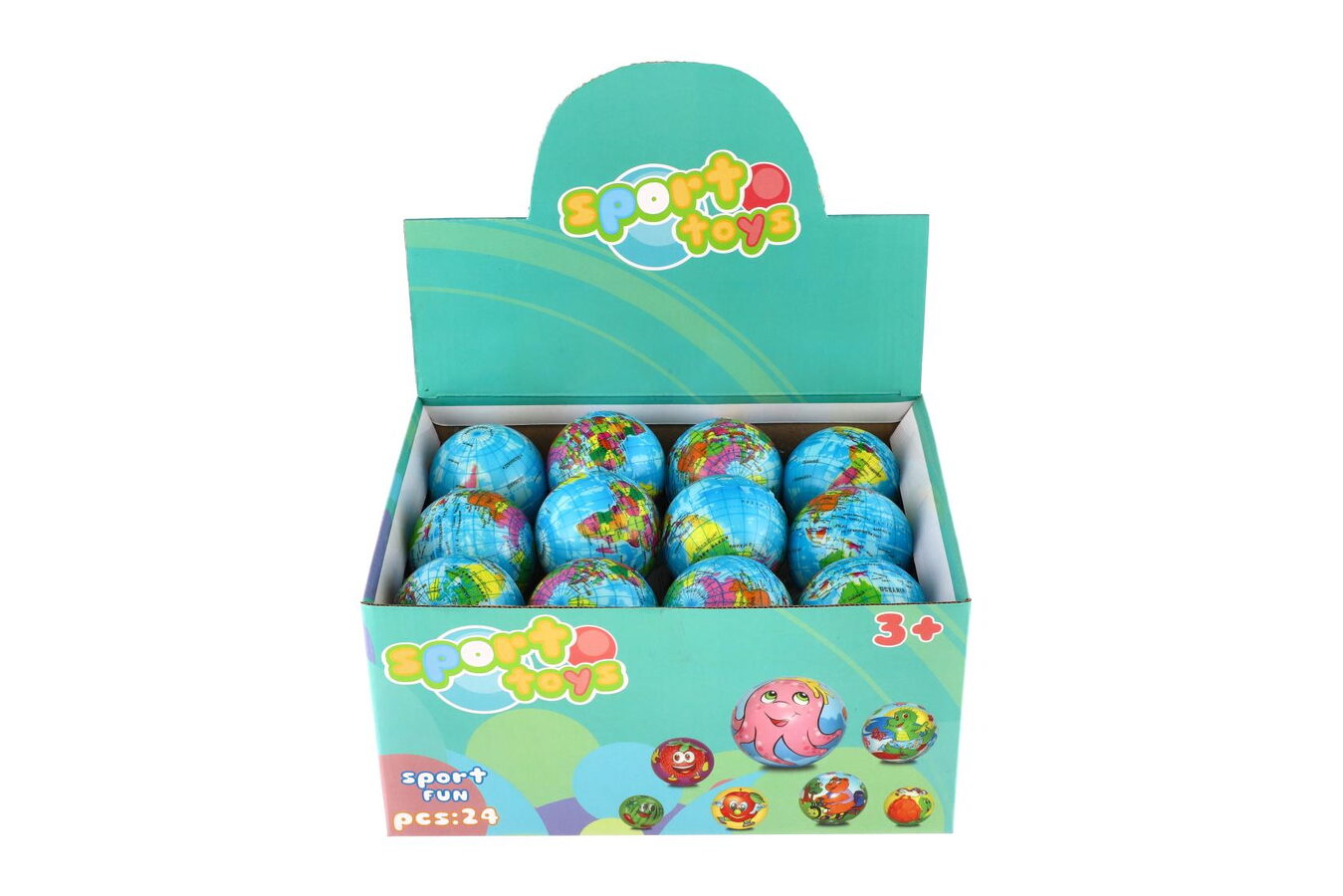 Míček zeměkoule pěna 6cm 24ks v boxu