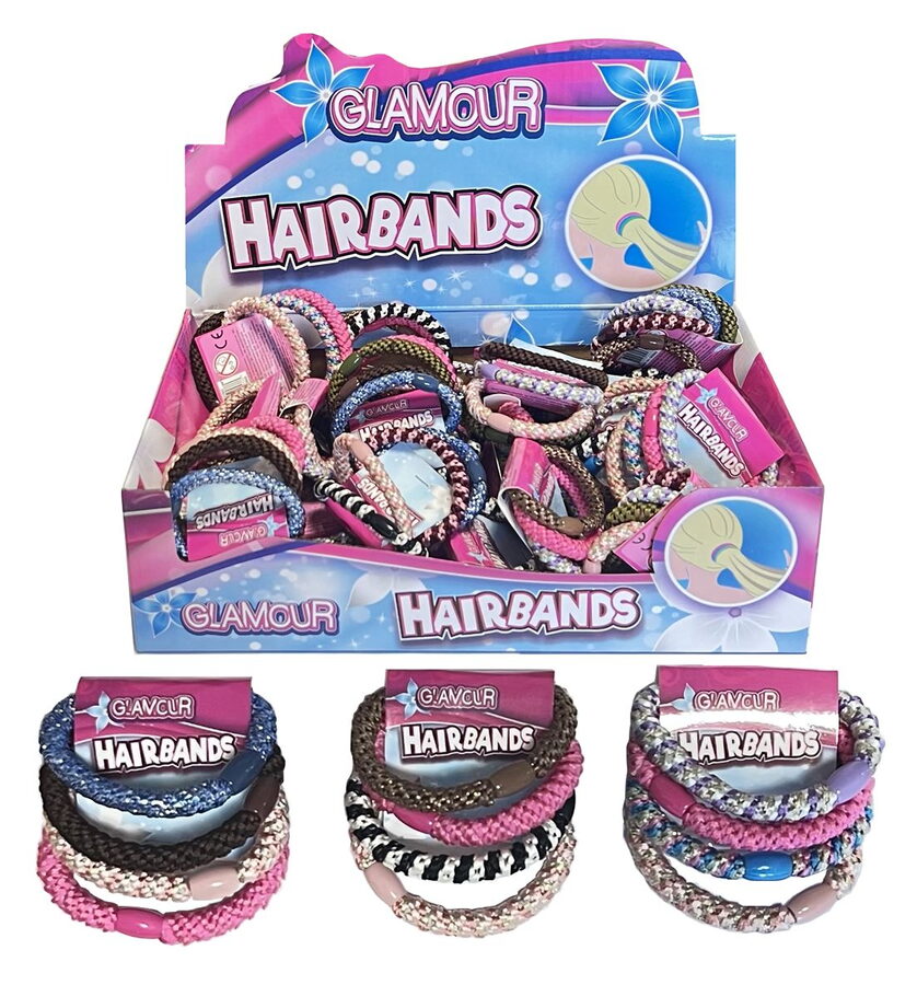 (BAL:1/36/144ks) Sada 4ks barevných gumiček do vlasů Glamour.Barvy: různé barvy. Materiál: textil, guma.Nevhodné pro děti do 3 let. Rozměr: 6x4x3,5cm.Balení: sada 4ks.Cena za jednu sadu.Prodej po 36sad v boxu.