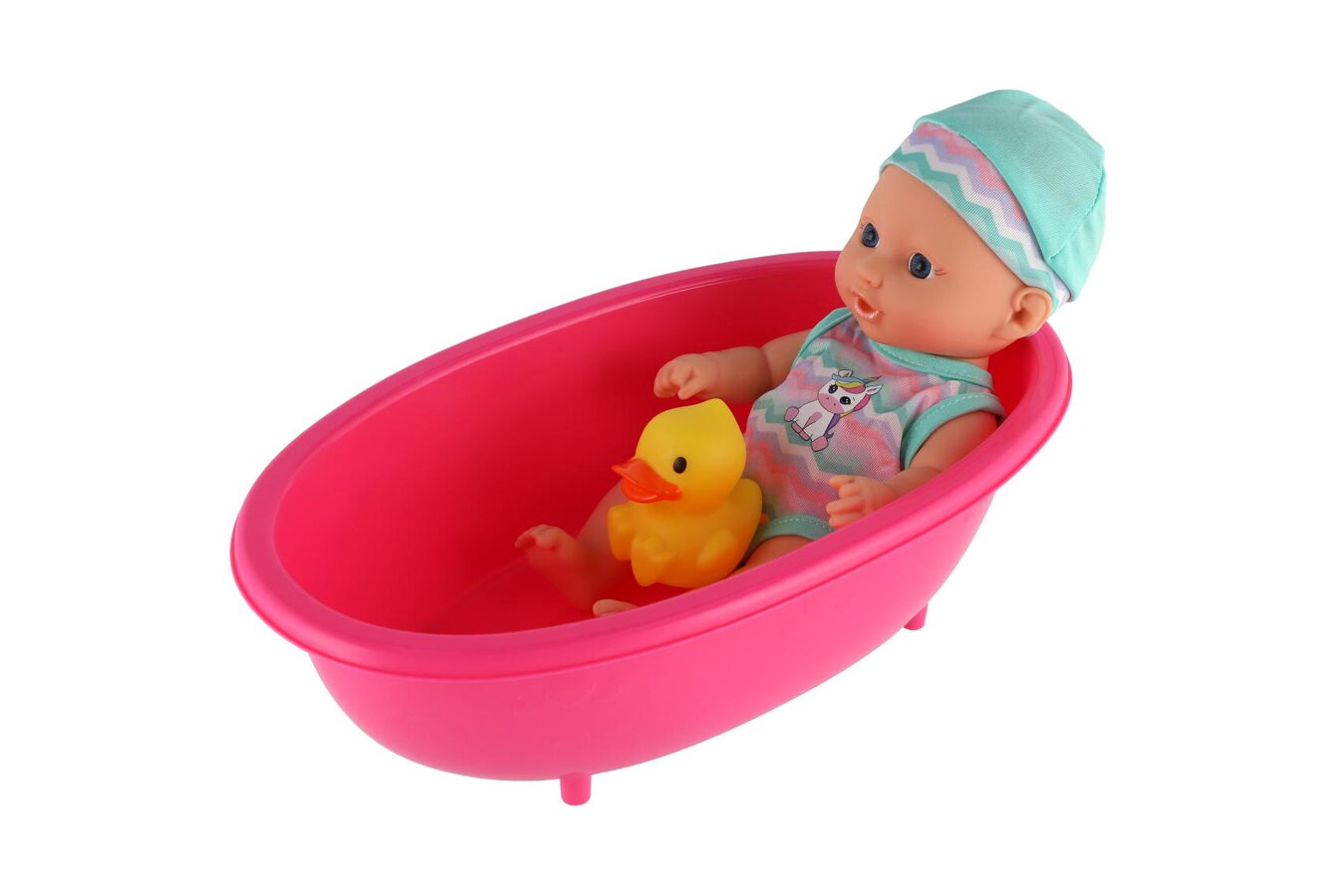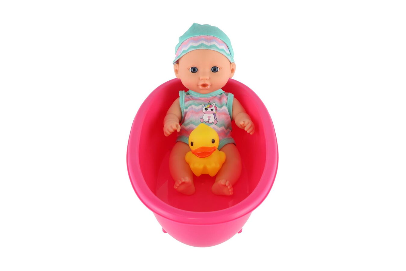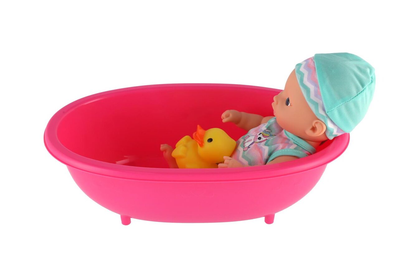 Hurá do koupele! Roztomilá panenka miminko se svou žlutou kačenkou zve děti ke hře na každodenní péči. Panenka je uložena v plastové vaničce a připravena na koupací dobrodružství. Díky ideální velikosti padne dobře do dětských rukou a podporuje rozvoj empatie, jemné motoriky i představivosti. Vanička s příslušenstvím tvoří kompletní herní set, který si děti zamilují.