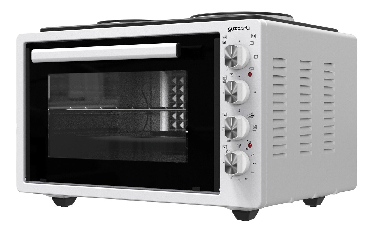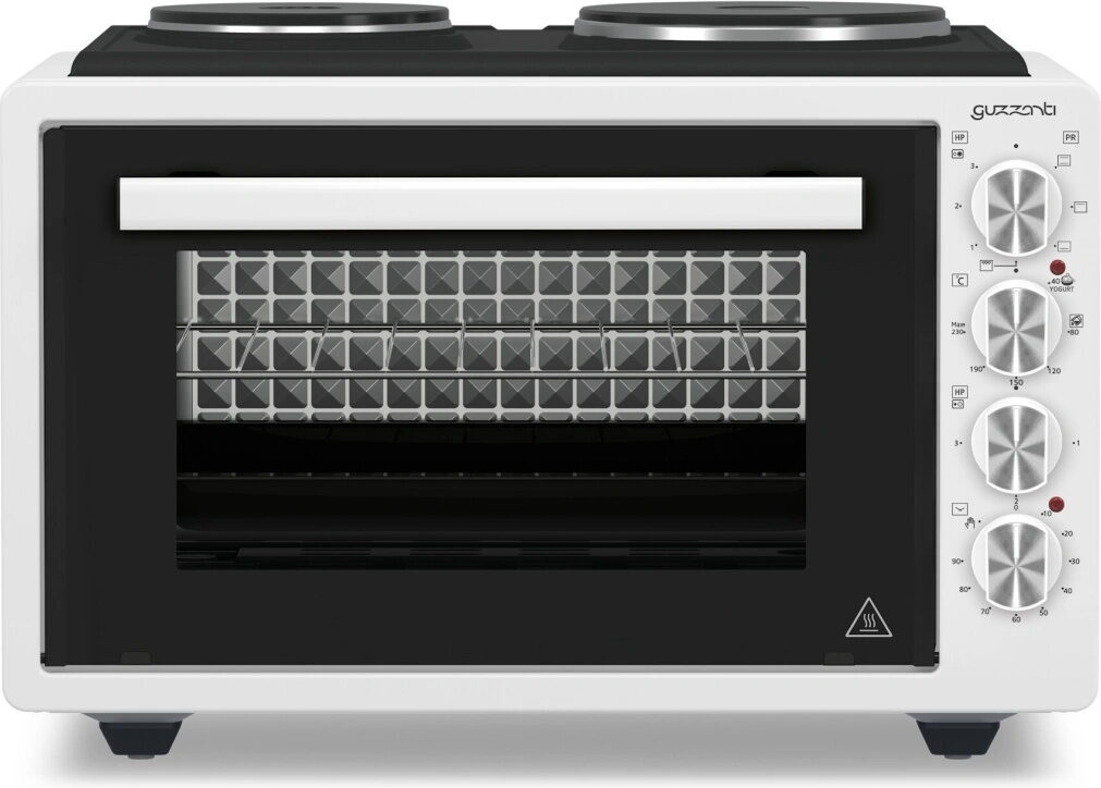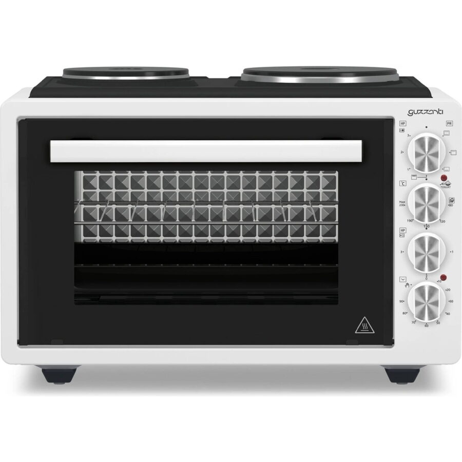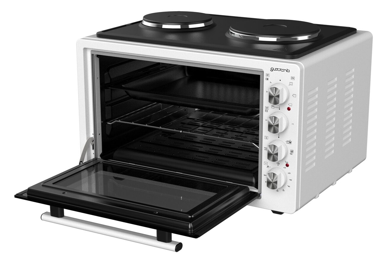Guzzanti GZ 3641A – elektrická pečící trouba s plotýnkami, 42 lElektrická pečící trouba Guzzanti GZ 3641A nabízí velký vnitřní prostor 42 l, dvě plotýnky pro vaření, horní a spodní topné těleso, praktické parní čištění a plynule nastavitelnou teplotu 40–230 °C. Ideální volba pro každodenní pečení i vaření na menším prostoru. ?.