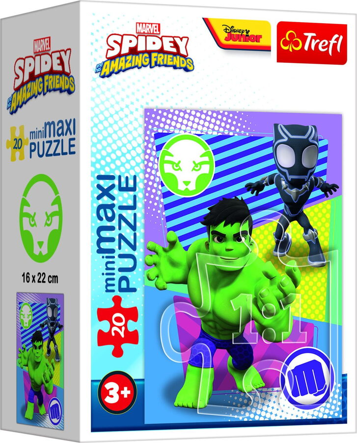 Dětské puzzle, které obsahují 20 velkých dílků. Poskládáním puzzlí s motivem Spidey a jeho úžasných přátel vznikne obrázek o rozměrech 220 x 160 mm.