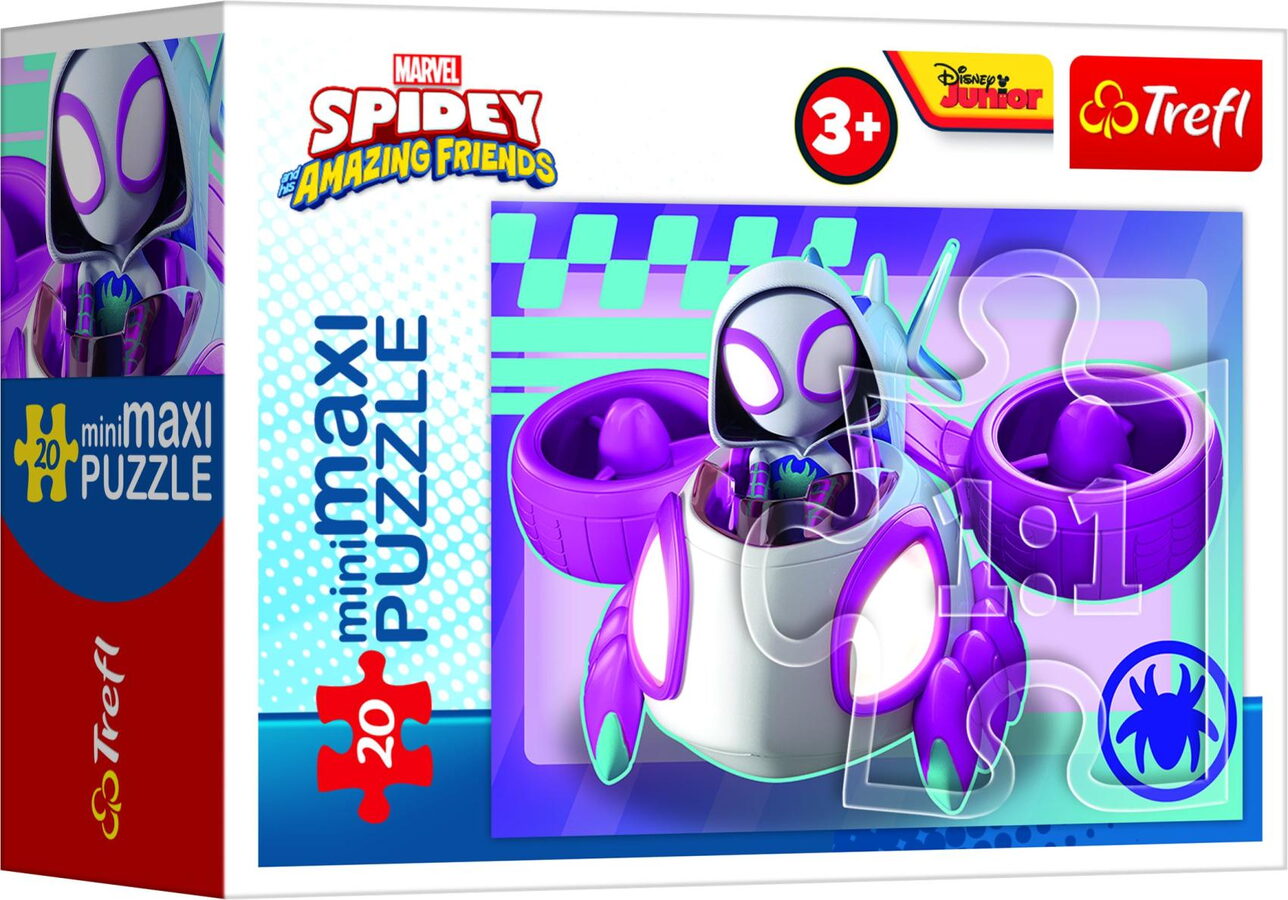 Minipuzzle miniMAXI 20 dílků Spidey a jeho úžasní přátelé 4 druhy v krabičce 11x8x4cm 24ks v boxu