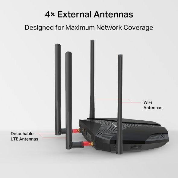 - 4 externí antény pro stabilní pokrytí a silný signál
