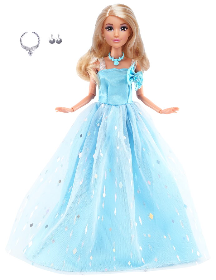 Módní panenka ve společenských šatech - dlouhé sv. modré