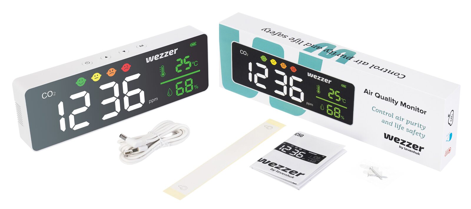 Monitor kvality ovzduší Levenhuk Wezzer Air MC50 měří hladinu oxidu uhličitého a zobrazuje naměřené hodnoty na LCD obrazovce. Jedná se o klíčový parametr, který určuje kvalitu vzduchu v místnosti, a ovlivňuje tak každodenní komfort osob v místnosti. Vysoká hladina oxidu uhličitého – jako neviditelný, ale přesto nebezpečný faktor – způsobuje únavu, bolesti hlavy, nízkou výkonnost a další nepříjemné příznaky. Získejte lepší kvalitu vzduchu díky přístroji Levenhuk Wezzer Air a rychle a snadno zlepšete kvalitu svého života!