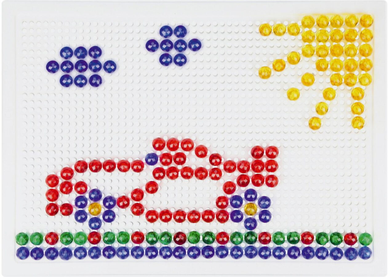 Skládej a vytvářej svůj vlastní svět plný krásných obrázků do mřížkované podložky. Poskládej si akvarium nebo si vytvoř třeba letadlo. Je to jen na tobě. Tvoř znovu a znovu díky 260 kusům plastových hlaviček o průměru 1,5 cm, které na desce umístíš přesně na místo, kam se ti bude hodit!