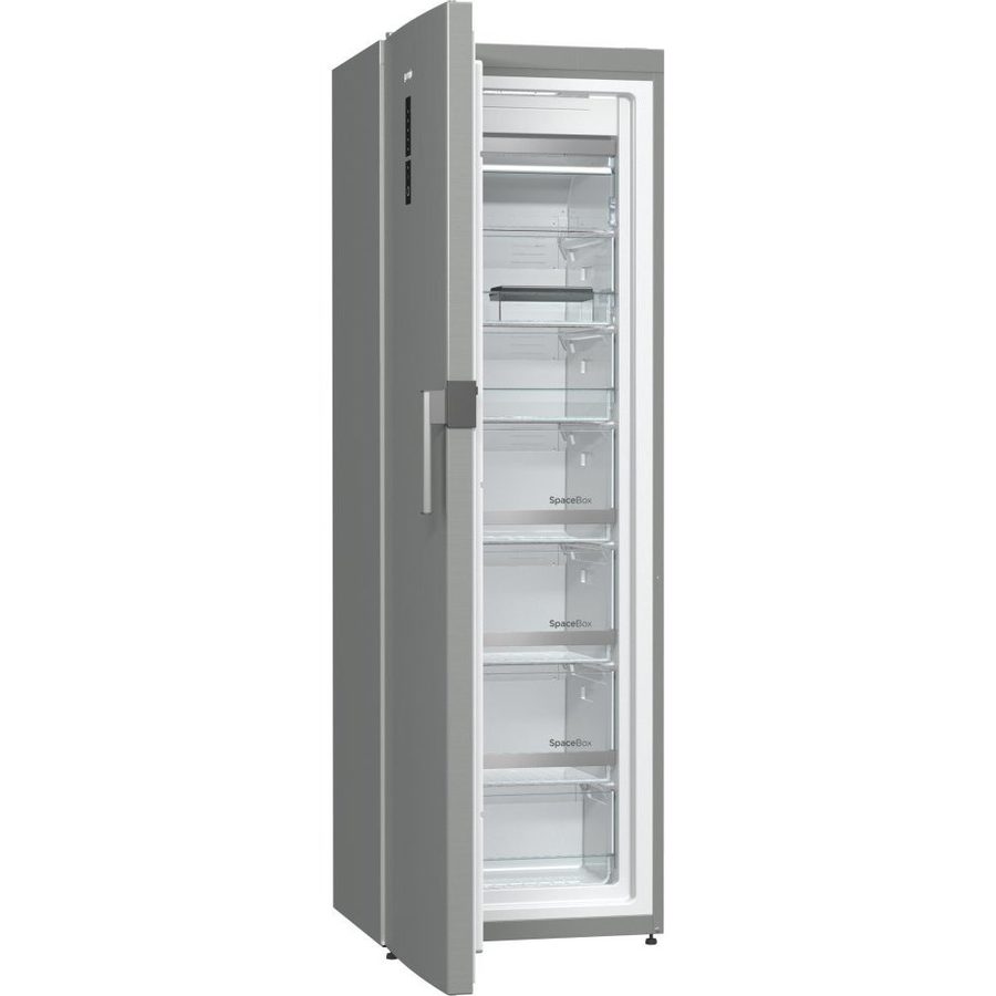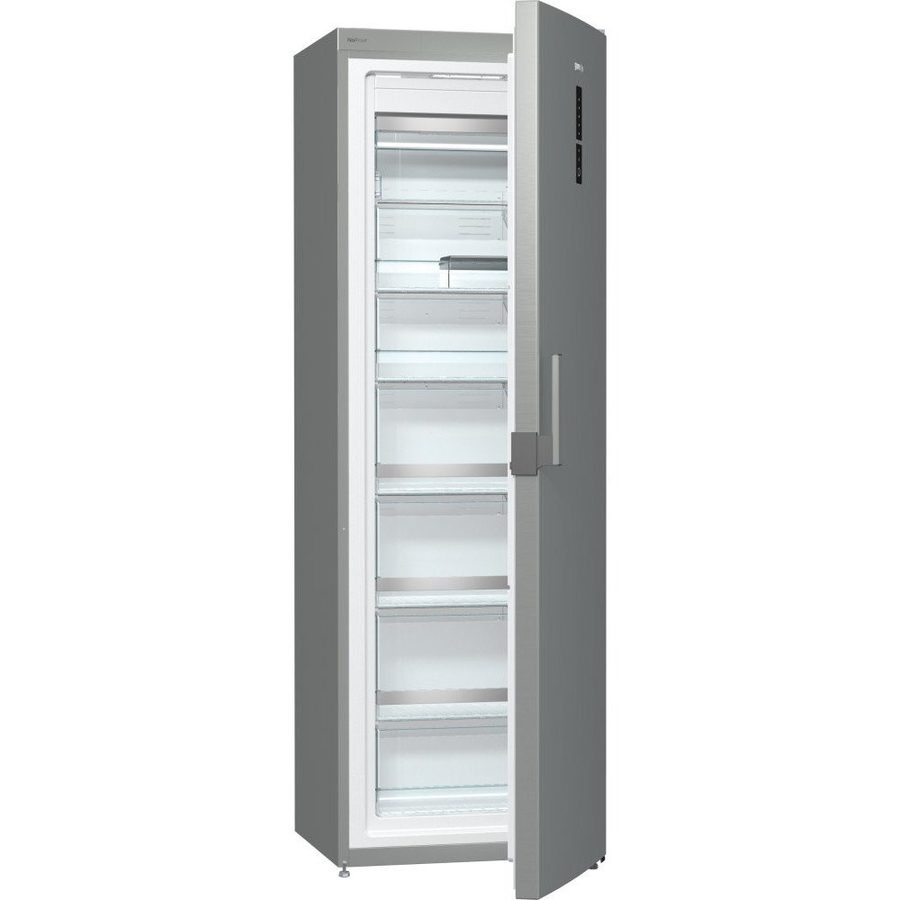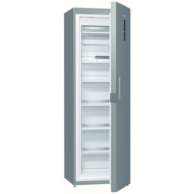 Mraznička Gorenje s NoFrost technologií v energetické třídě E. Objem 243 l, displej na dveřích, nerezové provedení