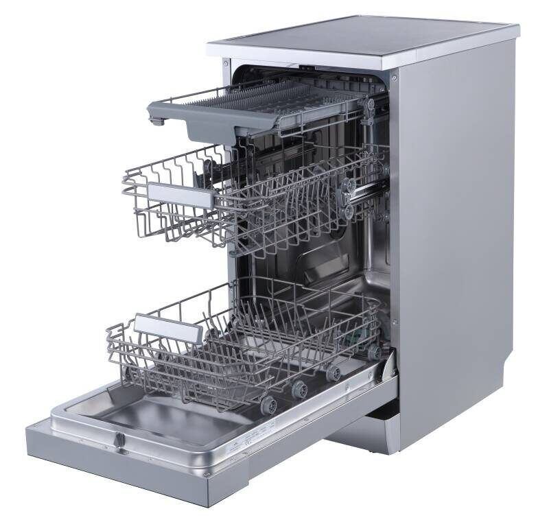 Vyberte si z bohaté nabídky 9 přednastavených programů. Nastavit si můžete odložený start až na 24 hodin dopředu a nechat ji pracovat v době, když jste v práci. Jakmile se vrátíte domů, bude nádobí čisté a usušené, připravené ke schování nebo dalšímu použití. Přehledný LED displej vás bude informovat o zvoleném programu, upozorní na nedostatek soli i nedostatek leštidla. Uvnitř myčky najdete samostatnou příborovou zásuvku, výškově nastavitelný horní koš a sklopné přihrádky na talíře.