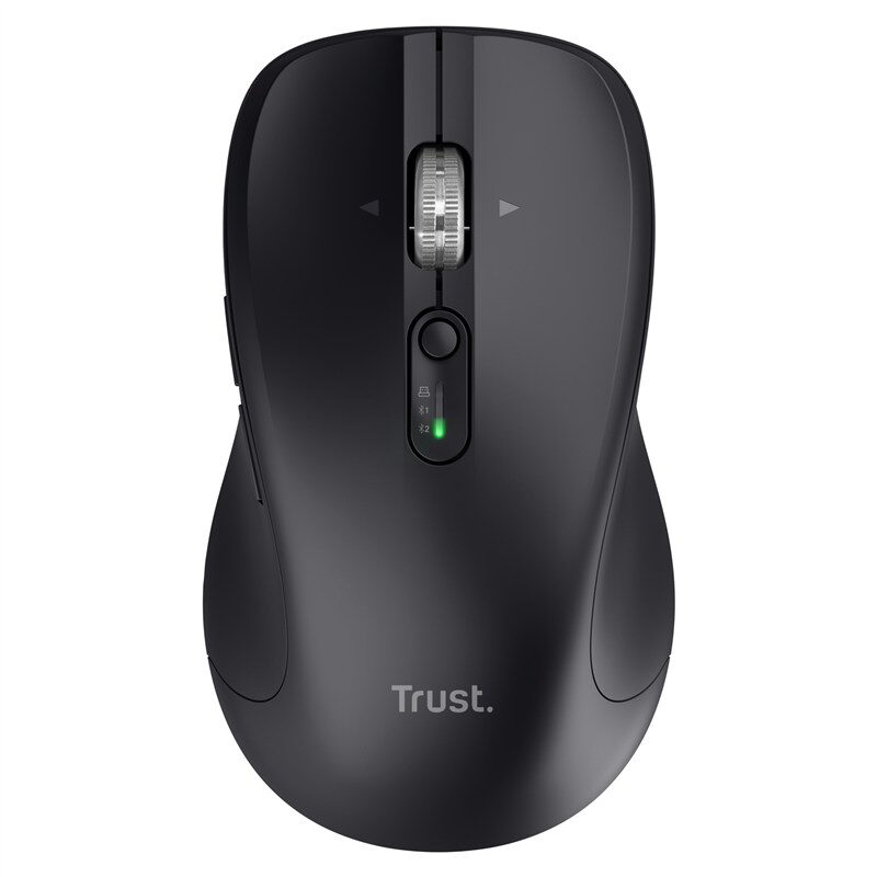 Trust Ferro Hyperwheel je bezdrátová myš navržená pro uživatele, kteří chtějí mít maximální kontrolu, rychlé přepínání mezi zařízeními a dlouhou výdrž na baterii. Kovové hyperscroll kolečko umožňuje bleskové procházení dokumentů i webových stránek, zatímco boční funkce naklápění rozšiřuje možnosti o horizontální posun. Díky možnosti připojení až ke třem zařízením – dvěma přes Bluetooth a jednomu přes 2,4GHz přijímač – můžete snadno přeskakovat mezi notebookem, tabletem a PC jediným tlačítkem. Tiché spínače a boční ovládací prvky zajišťují pohodlné a nerušené používání doma i v kanceláři.