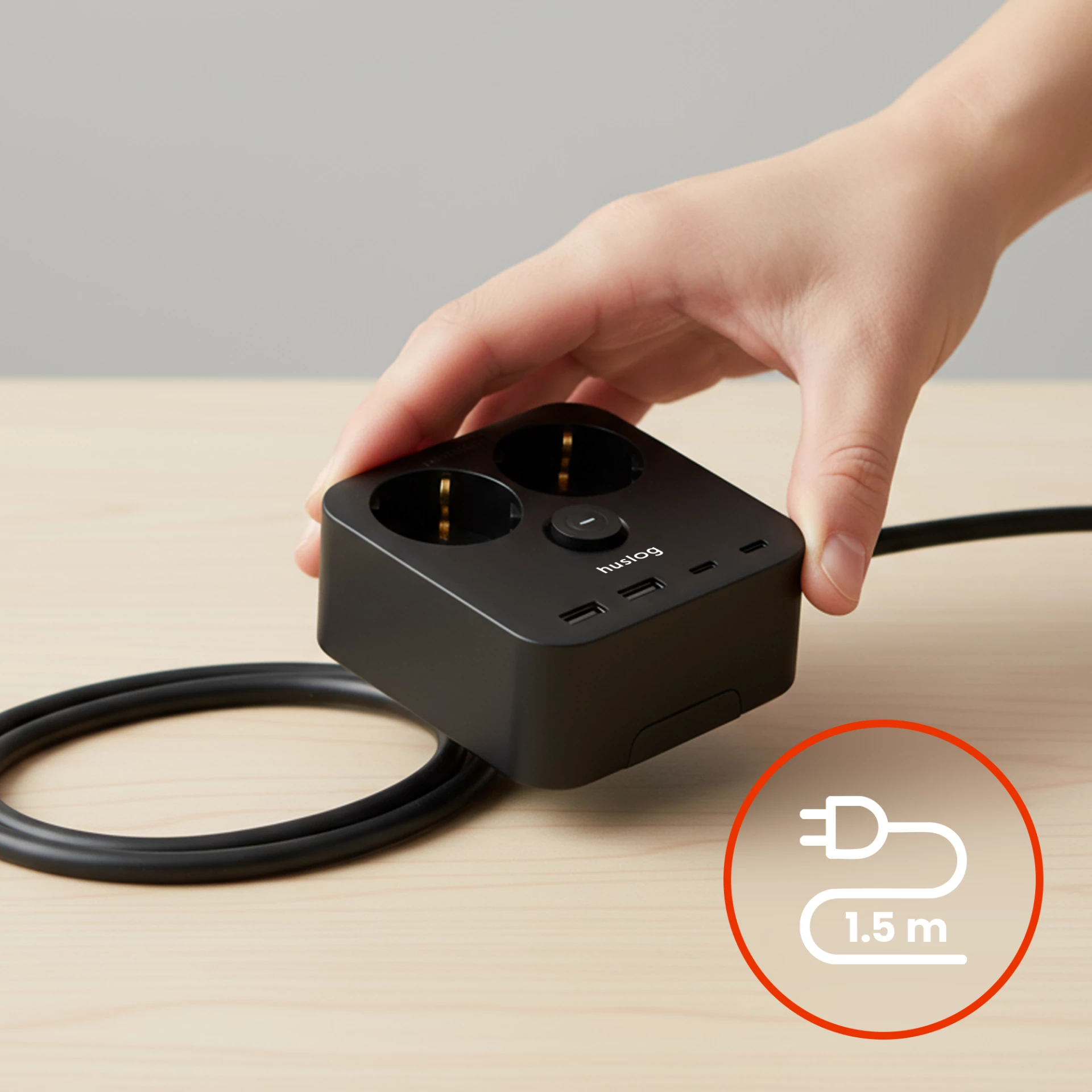 Kompaktní rozměry a dlouhý kabelS rozměry 97 × 97 × 44 mm a kabelem o délce 1,4 m je prodlužovací kabel mimořádně praktický a snadno přenosný. Vejde se do tašky nebo batohu a zároveň umožňuje volné umístění na stole nebo nočním stolku. To zaručuje mobilitu a pohodlí při používání kdekoli. |