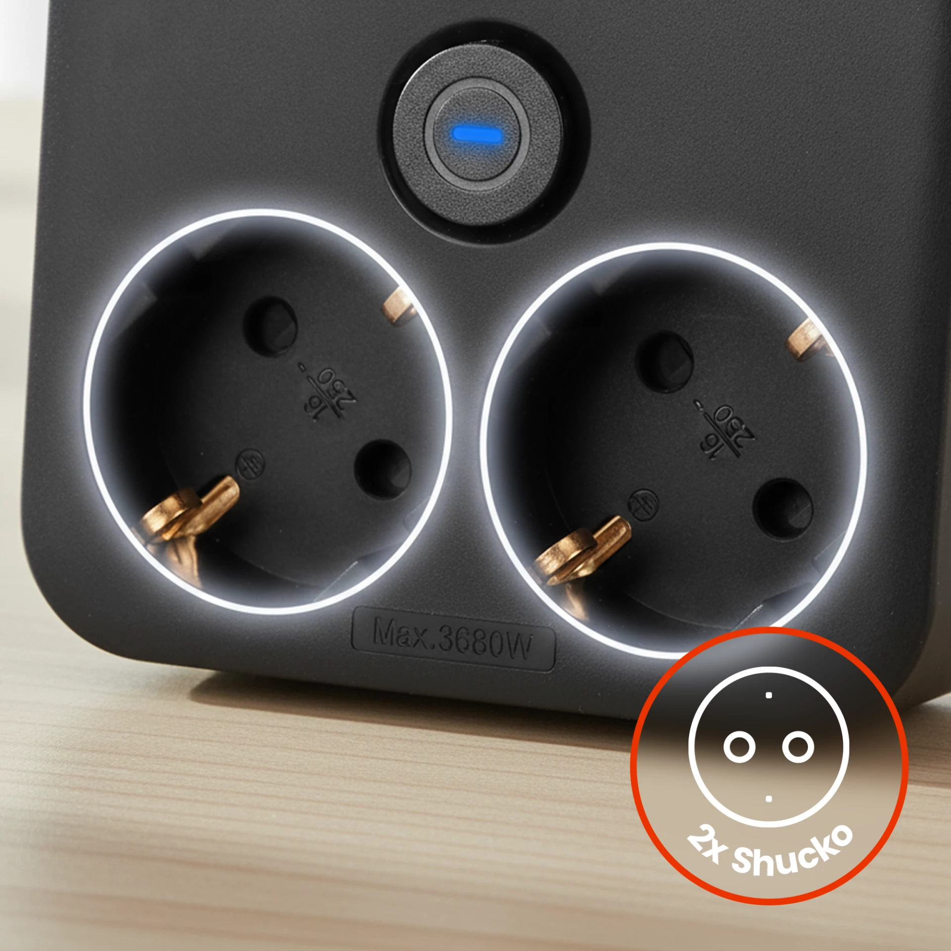 2 zásuvkyKompaktní prodlužovací kabel je vybaven 2 zásuvkami 230 V, které jsou ideální pro připojení nejdůležitějších zařízení, jako jsou lampy, nabíječky notebooků nebo malé domácí spotřebiče. Díky tomu máte vždy po ruce další zdroj napájení. To znamená funkčnost v kanceláři, ložnici i na cestách. |