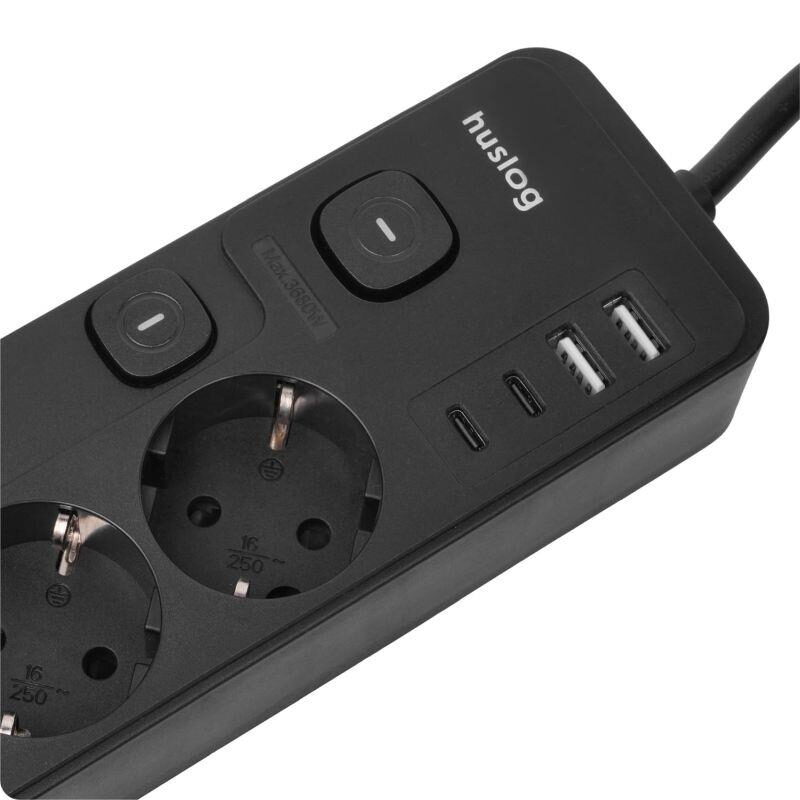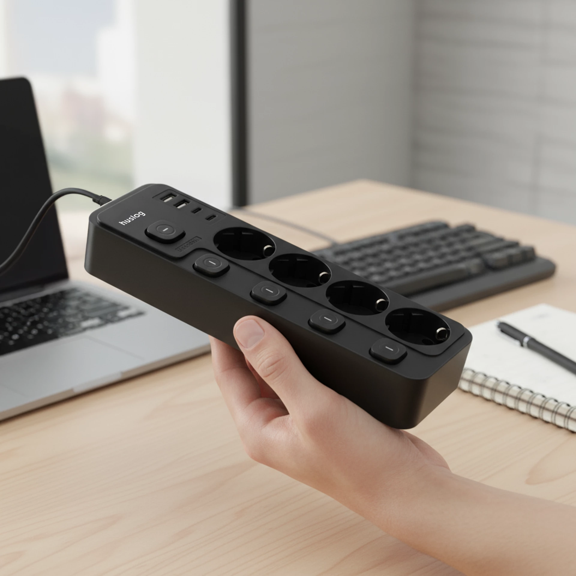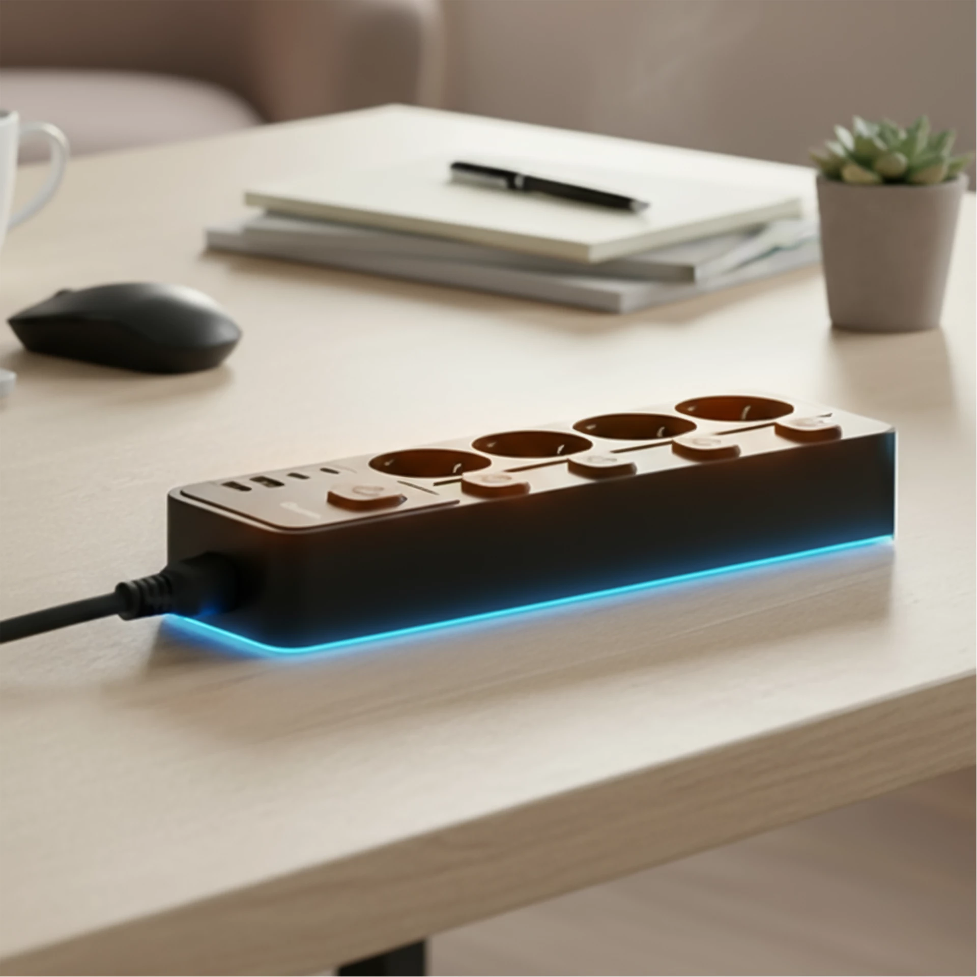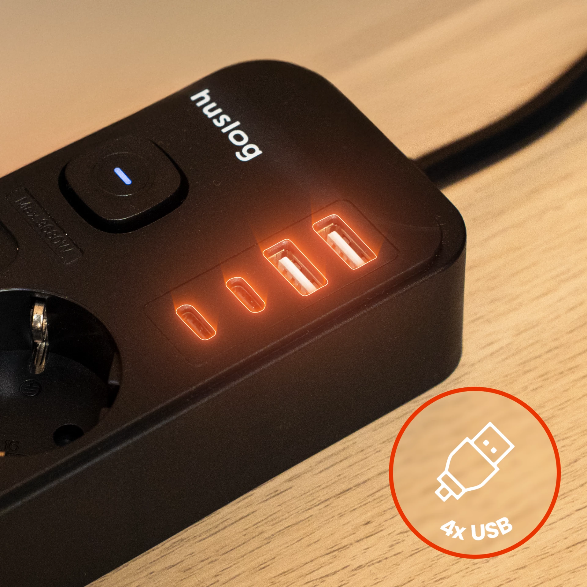 4 USB portyDíky 2 portům USB-A (2,4 A) a 2 portům USB-C (3 A) můžete nabíjet až 4 zařízení současně. Smartphony, tablety a příslušenství jsou vždy připraveny k použití, aniž byste museli používat další nabíječky. To vám ušetří místo a přinese pohodlí doma i v kanceláři. |