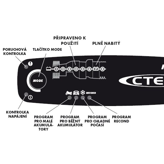 Nabíječka CTEK MXS 5.0 news LED displejem má teplotní čidlo pro autobaterie a je řízená mikroprocesorem. Poskytuje automatickou kompenzaci teploty pro bezkonkurenční výkon olověných akumulátorů od 1,2 do 110 Ah.
