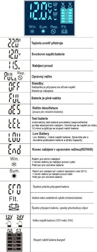 - Typ: Automatická nabíječka Pb a LiFePO4 baterií