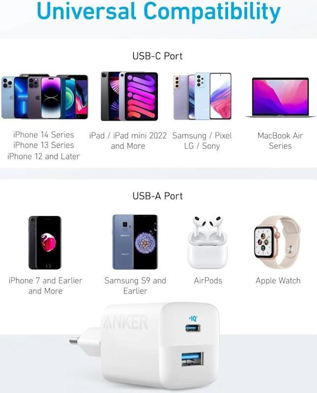 Typ nabíječky: Interní Zažijte nevídanou rychlost nabíjení s nabíječkou Anker 323 (33 W) - ultrakompaktním bleskovou energii. Díky výkonnému 33W portu USB-C můžete nabíjet až třikrát rychleji než s originální nabíječkou, zatímco přídavný port USB-A umožňuje nabíjet dvě zařízení současně. Rychlé nabíjeníPort USB-C s maximálním výkonem 33 W nabije iPhone 14 z 0 % na 50 % za pouhých 25 minut, takže se můžete rychle vrátit k práci.