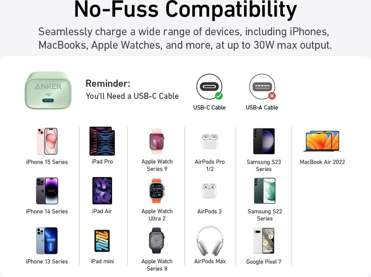 Nabíječka do sítě Anker 511 Nano 4 30W, USB-C zelená