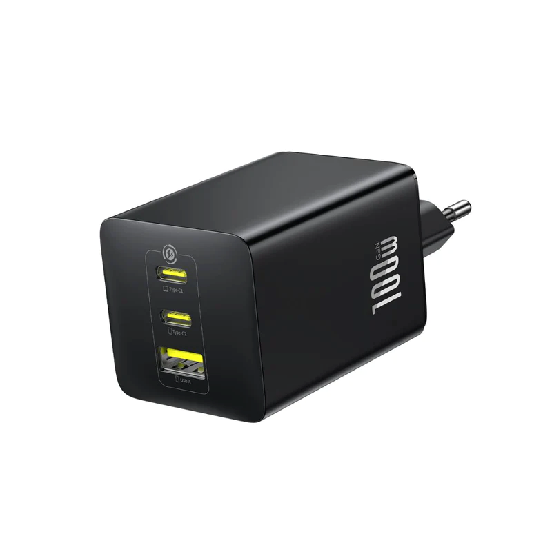 - Konstrukce tři v jednom: Porty USB-C1, USB-C2 a USB-A nabíjejí několik zařízení najednou