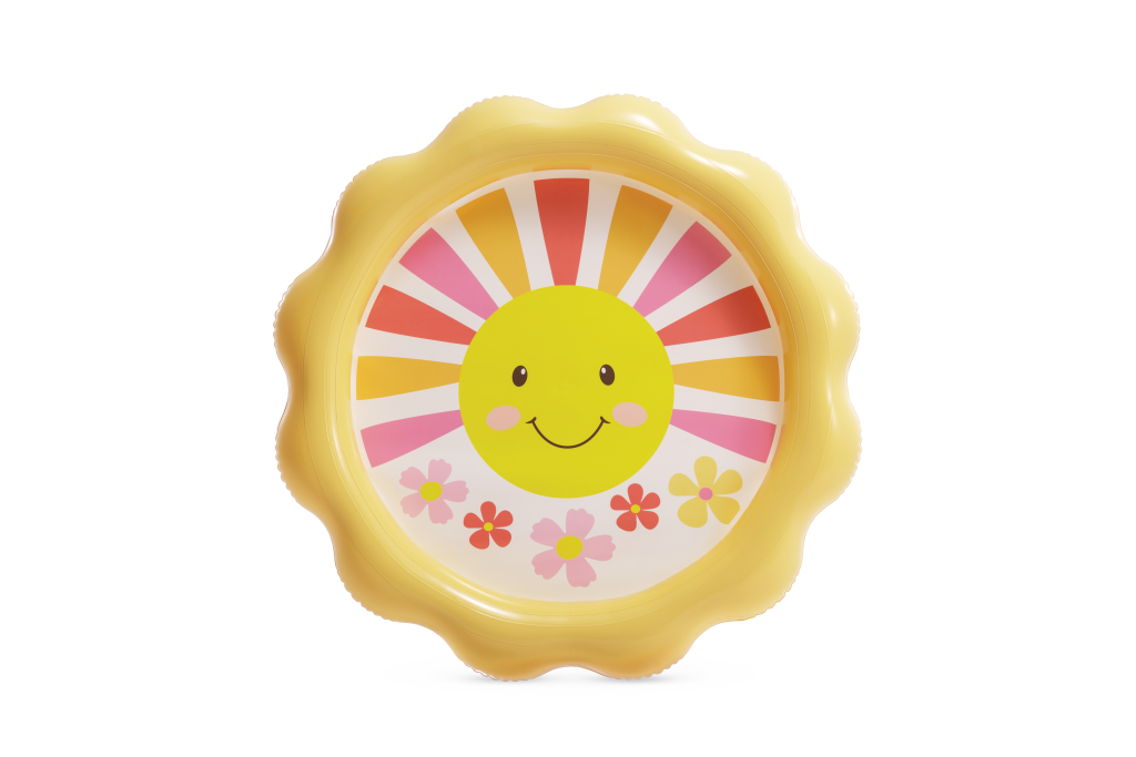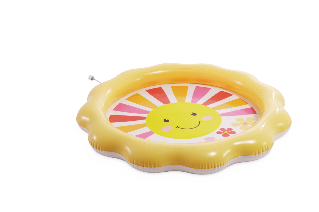 Nafukovací dětský bazén ve tvaru sluníčka. Po připojení k zahradní hadici vznikne díky otvorům po obvodu příjemná sprška. Vhodné pro děti od 2 let.
